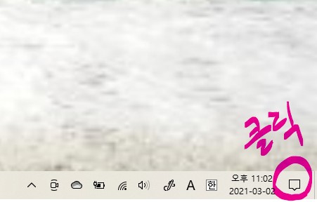 1. 노트북 오른쪽 아래로 가서 《알림?》을 클릭합니다.