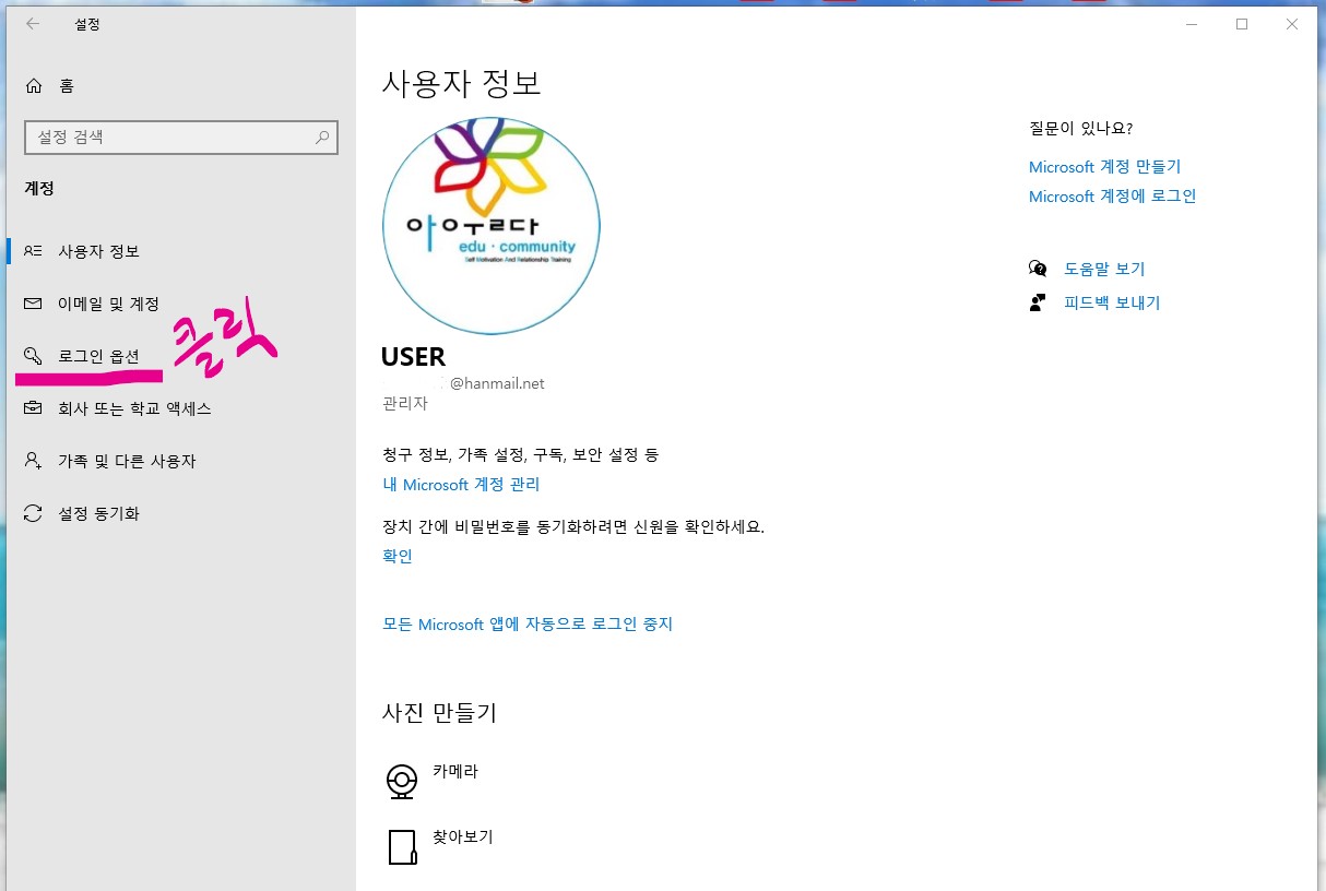 4. 왼쪽에서 《로그인 옵션》을 찾아 클릭합니다.