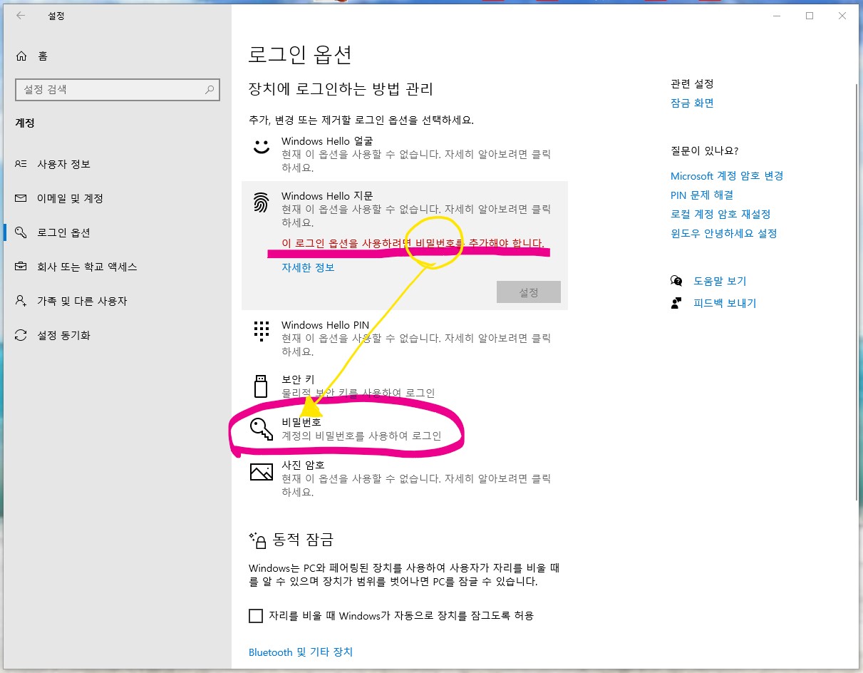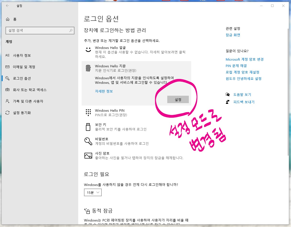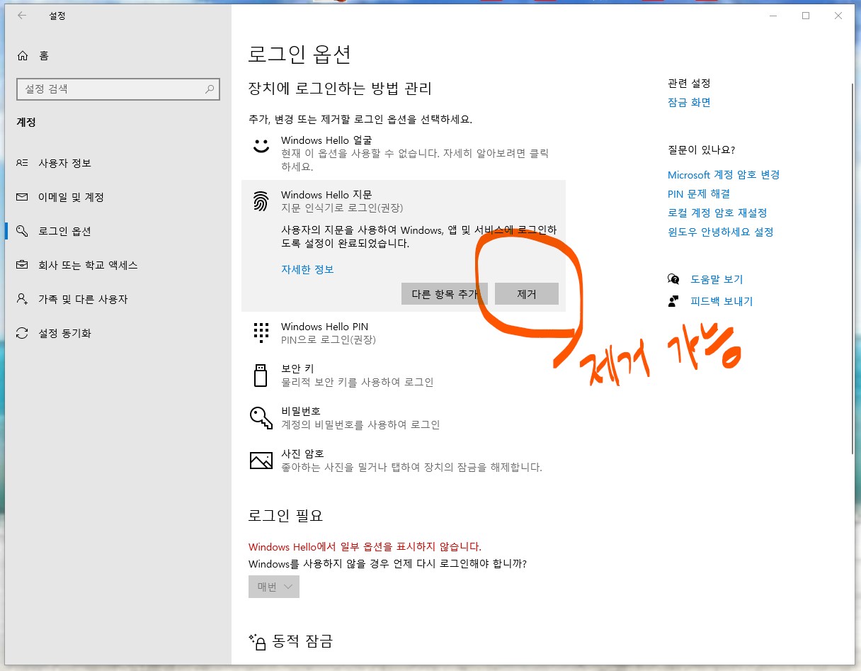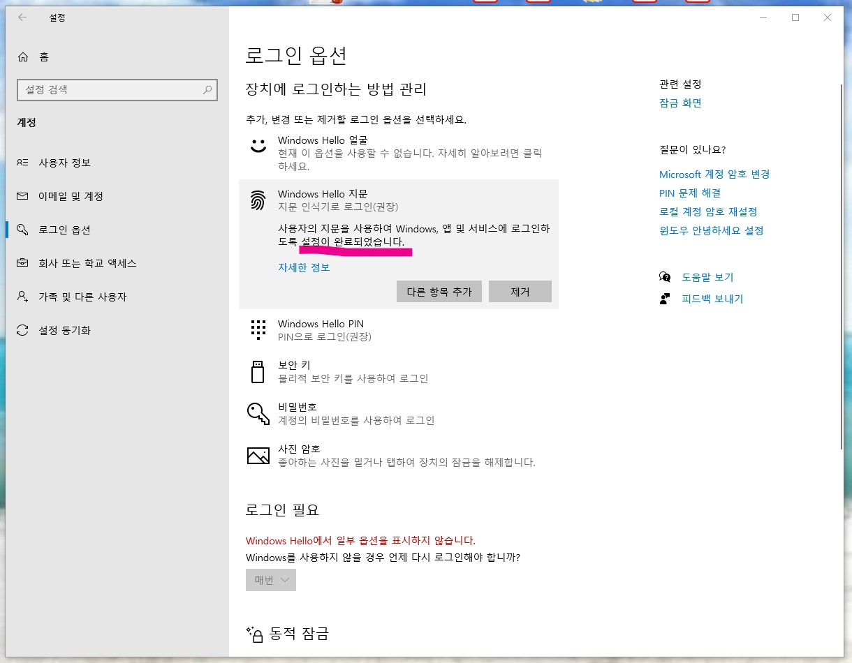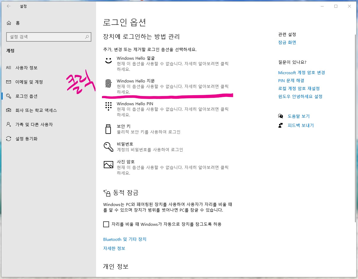 5. 이제 《Windows Hello 지문》으로 갑니다.