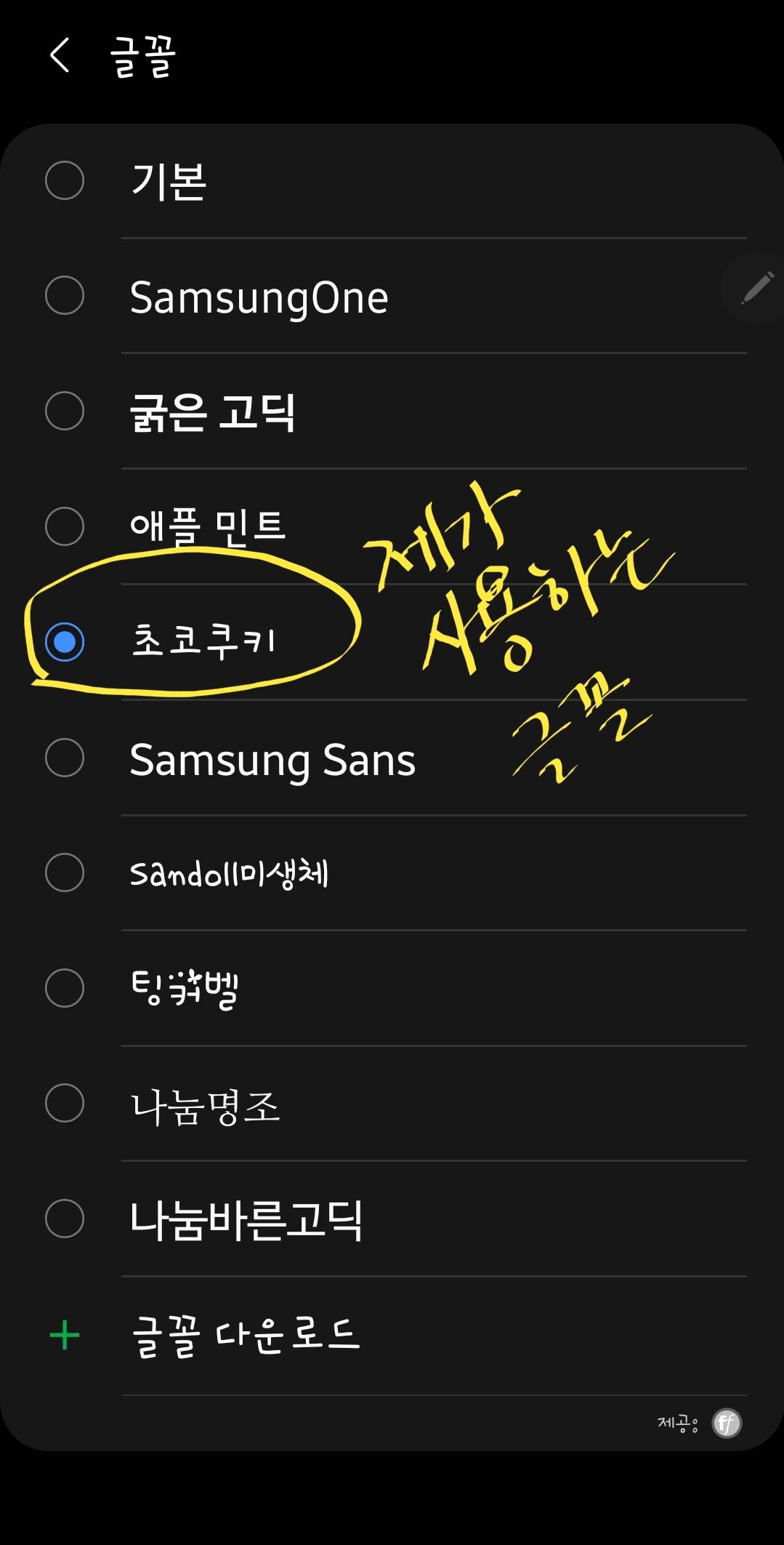 4. 다운받은 후 지정하면 끝💯 제가 사용중인 초코쿠키 글꼴도 이젠 보일 겁니다✌