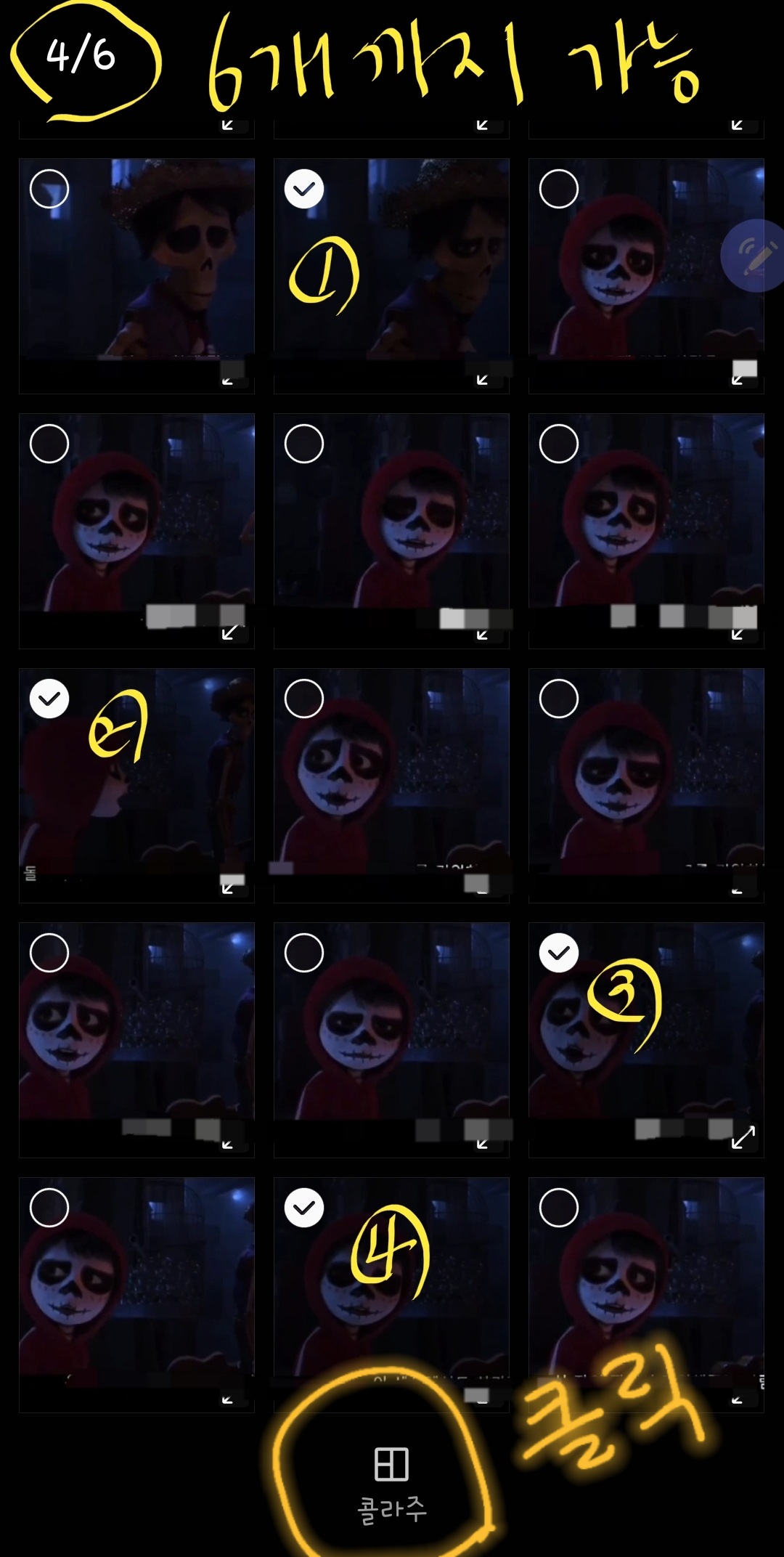 2. 《6개 까지만 가능》하다고 나옵니다. 원하는 사진 선택📌
