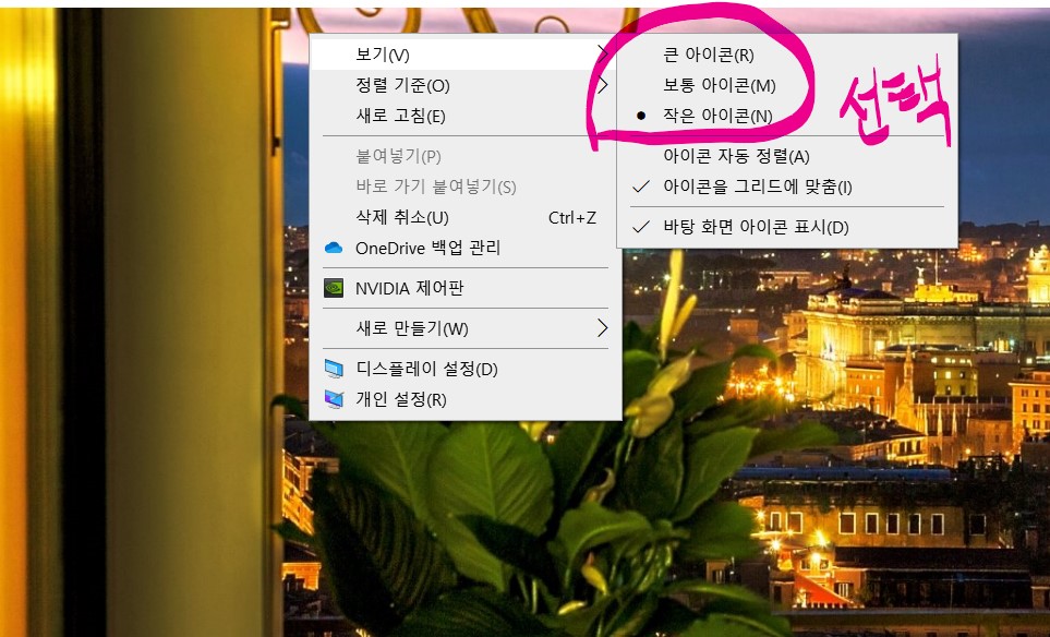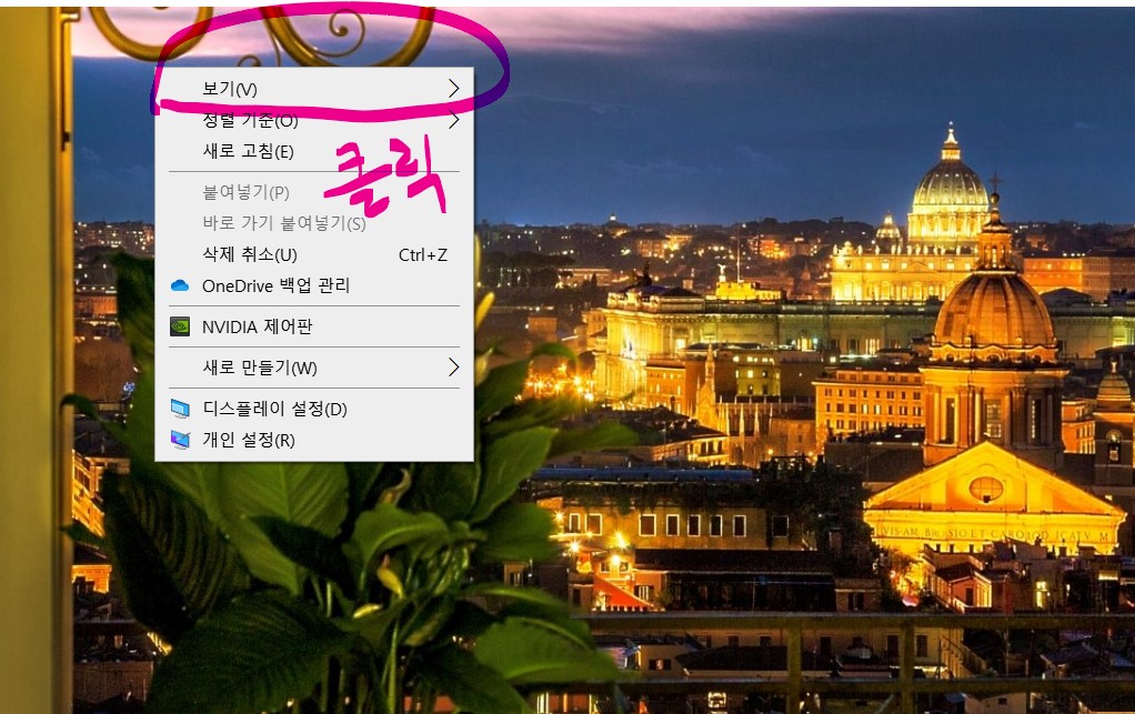 1. 첫번째 방법은 [마우스로 바탕화면을 클릭] - [Ctrl + 마우스 휠] 입니다.