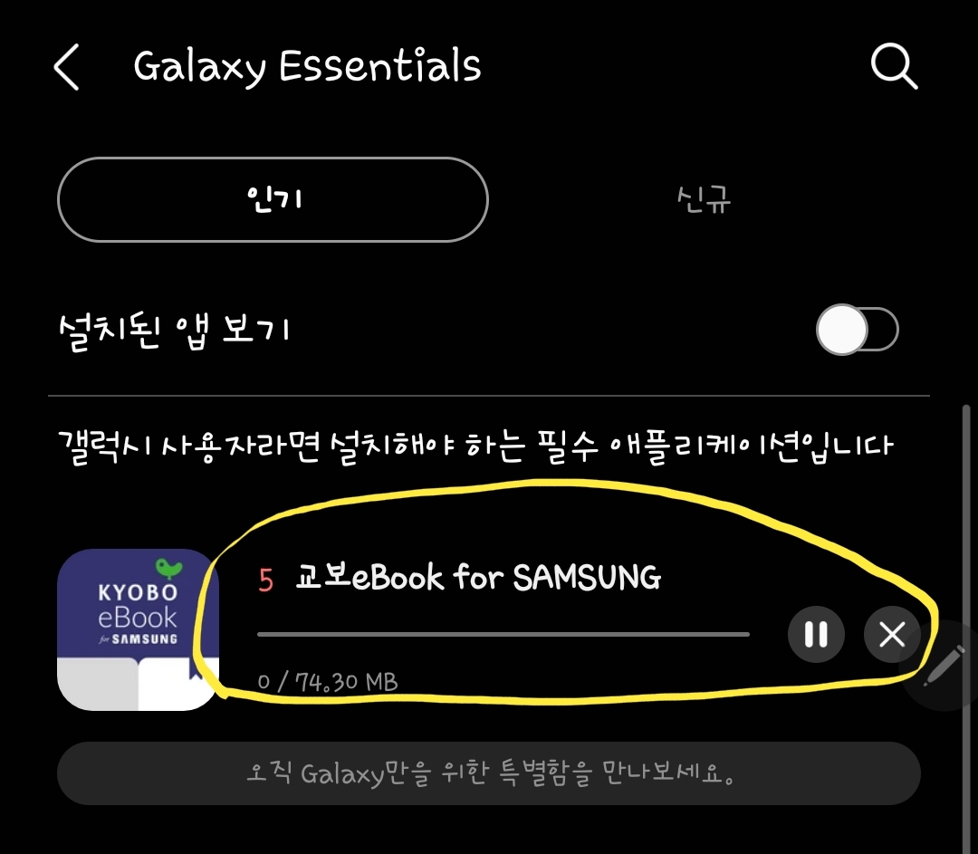 📌 팝업 창에서 《Galaxy Essentials》 클릭