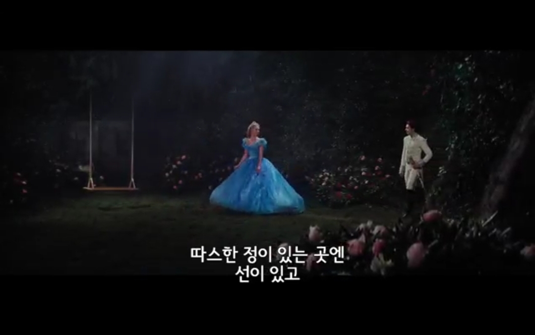 1950년 디즈니 만화영화와 2015년 영화에는 결정적 차이가 나오는데 유리구두 부분이랍니다. 이 부분이 궁금하다면 영화를 다시 보거나 다음 링크 예고편과 위에 첨부한 동영상을 비교해 보시면 되겠습니다.