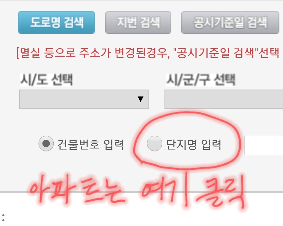 5. 아파트는 《단지명 입력》을 클릭하고 진행📌