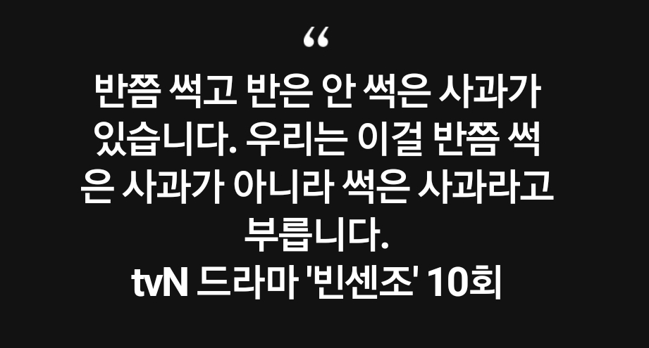 어제(2021.03.21) 방영된 tvN 드라마 빈센조에서도 《썩은 사과 비유》가 나왔는데요📌
