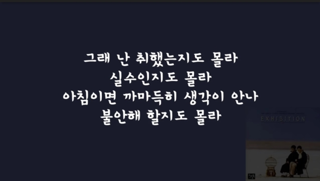 ... 그래 난 취했는지도 몰라 / 실수인지도 몰라 / 아침이면 까마득히 생각이 안나 / 불안해 할지도 몰라...