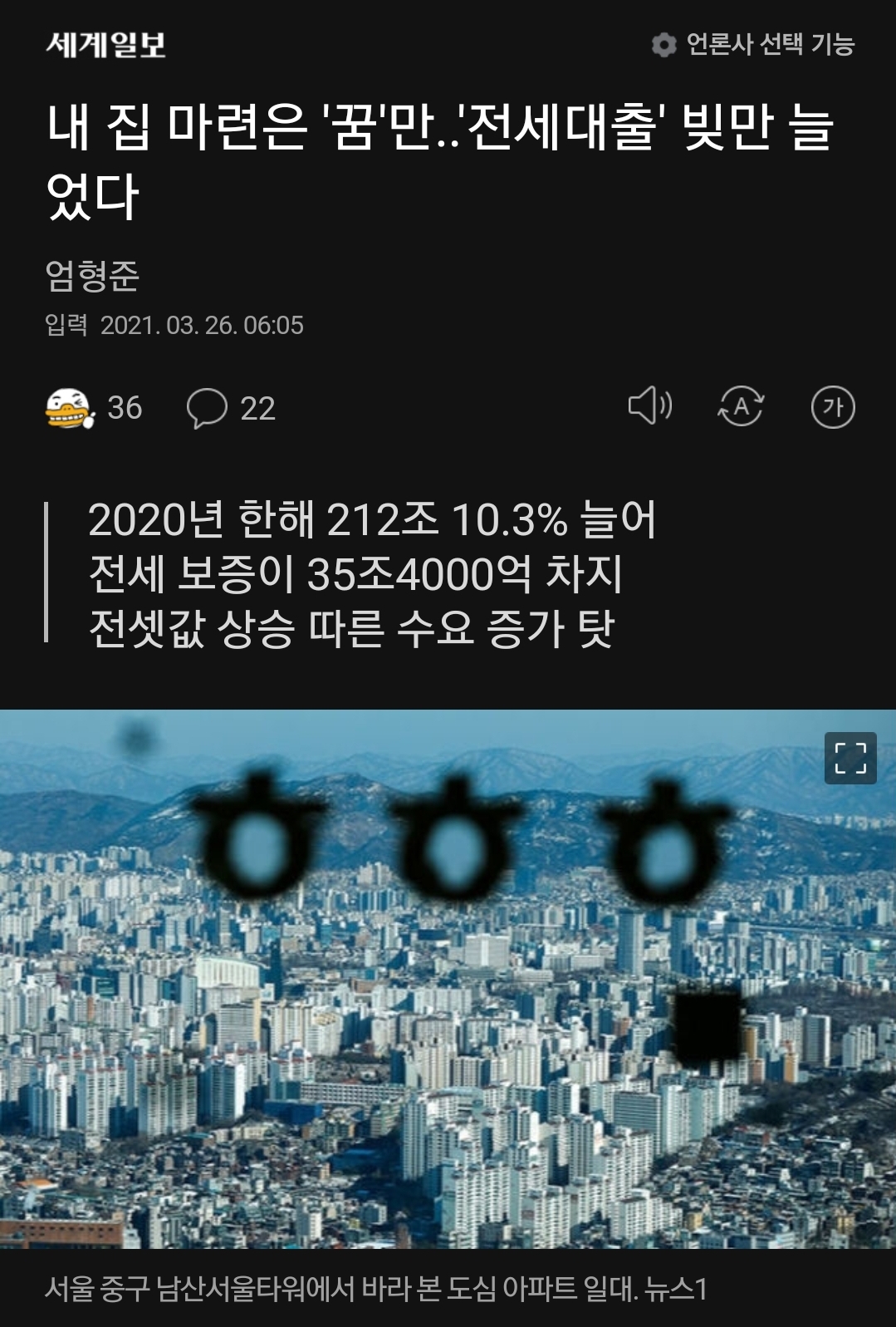 내 집 마련은 '꿈'만..'전세대출' 빚만 늘었다 2021.03.26