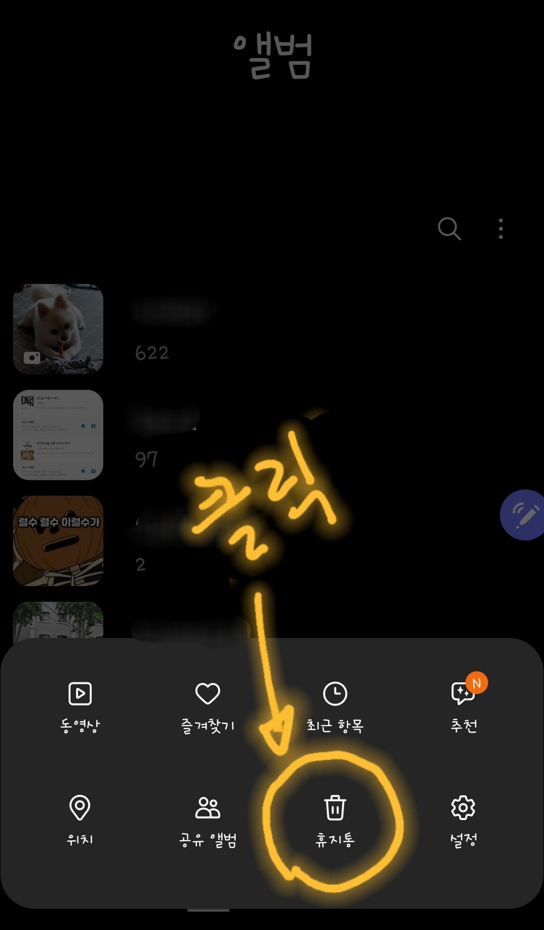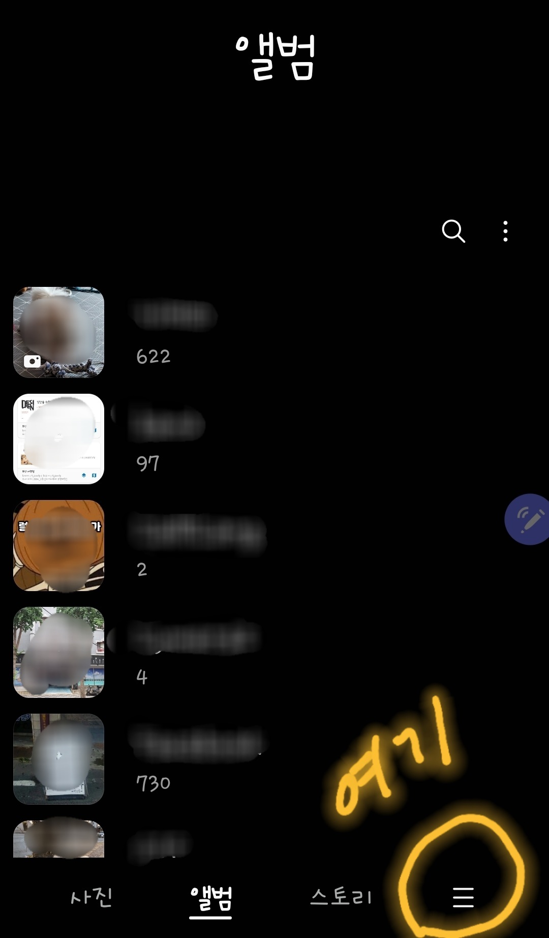 2. 갤러리 앨범 《오른쪽 아래 줄 3개》로 갑니다