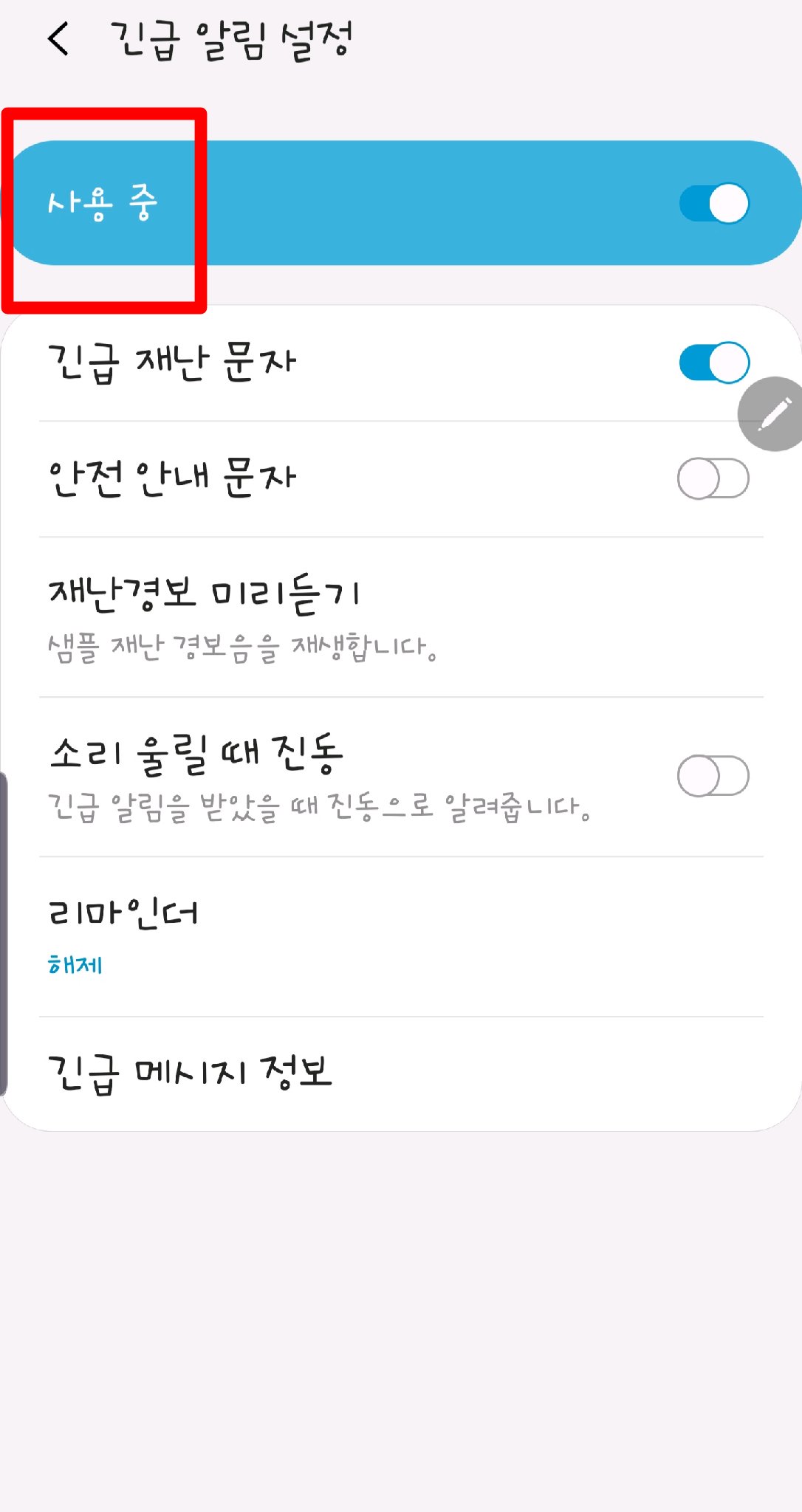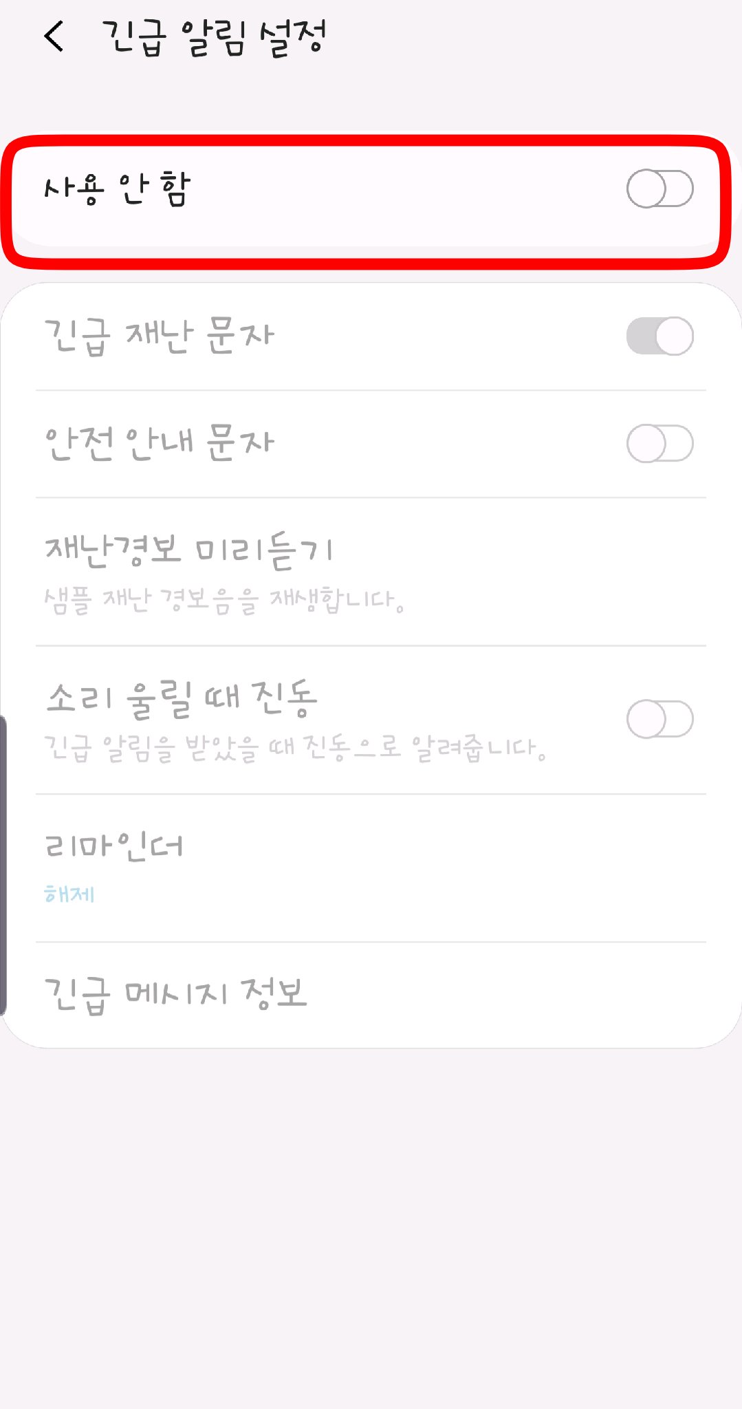 다 하셨으면 이제 긴급재난문자의 소리폭격으로 부터 해방되셨습니다