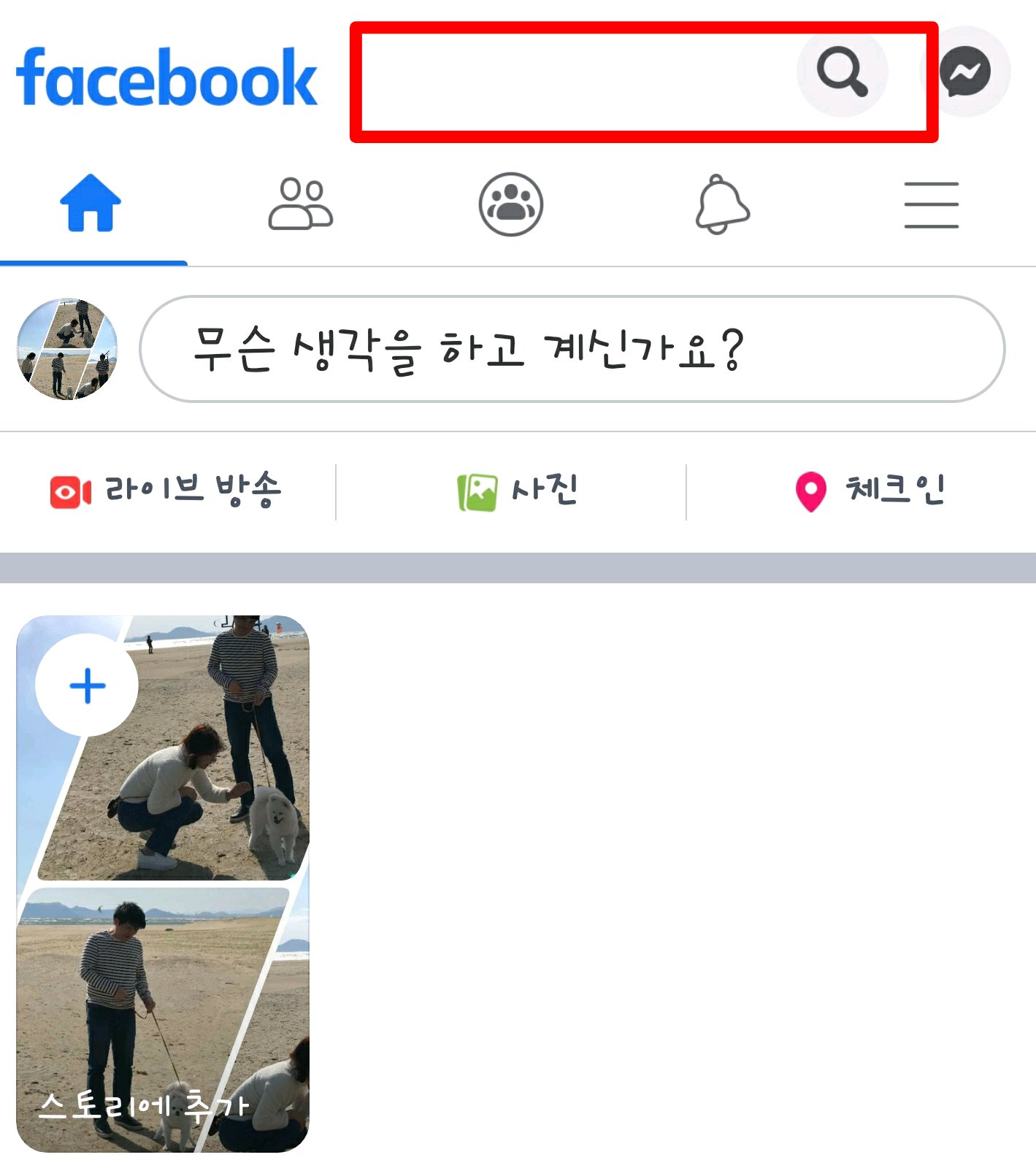 1. 먼저 페북 상단에 있는 검색창을 찾습니다.