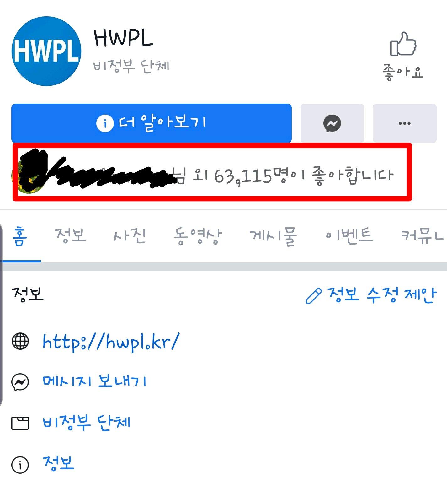 이때 빨간 창으로 그려놓은 <몇명(63.115명)이 좋아합니다> 부분을 누르면 됩니다.