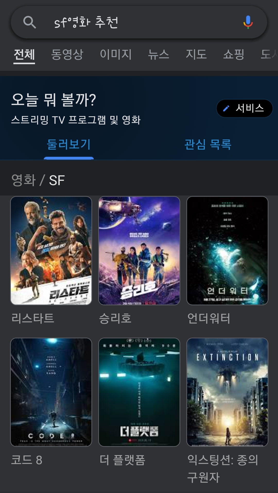 《구글에서 SF영화 추천이라고 검색을 하면》 다음과 같은 작품들이 나옵니다.