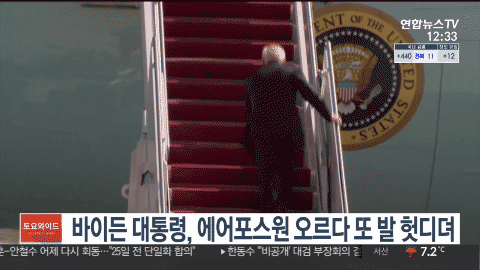 얼마전 미국 바이든 대통령에게도 웃픈 일이 있었는데요, 에어포스원 전용기 계단을 오르다 헛발질을 하며 넘어지는 장면을 보셨을 겁니다.