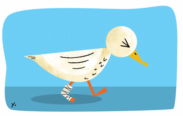 “절름발이 오리라는 뜻으로, 임기 종료를 앞둔 대통령 등의 지도자 또는 그 시기에 있는 지도력의 공백 상태를 이르는 말.”