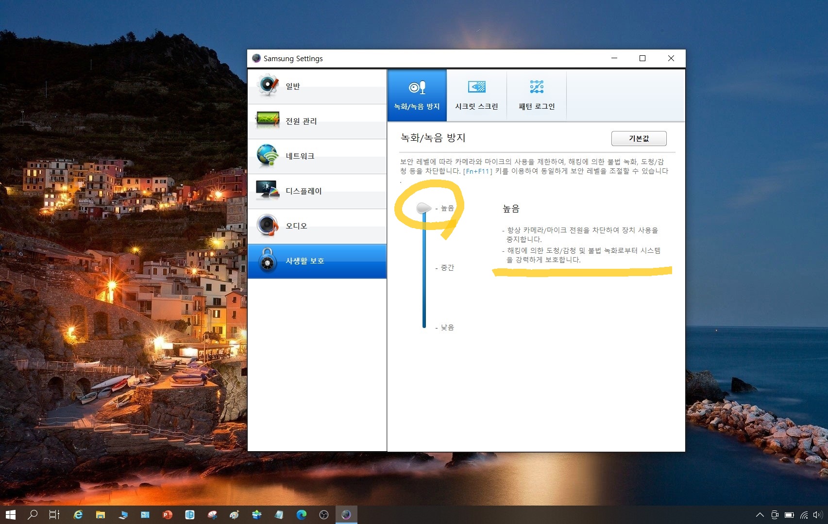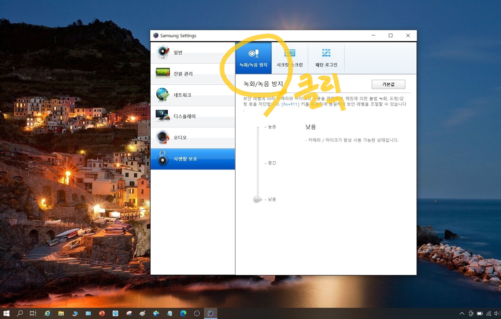 6.<사생활 보호> → <녹화/녹음 방지> 클릭