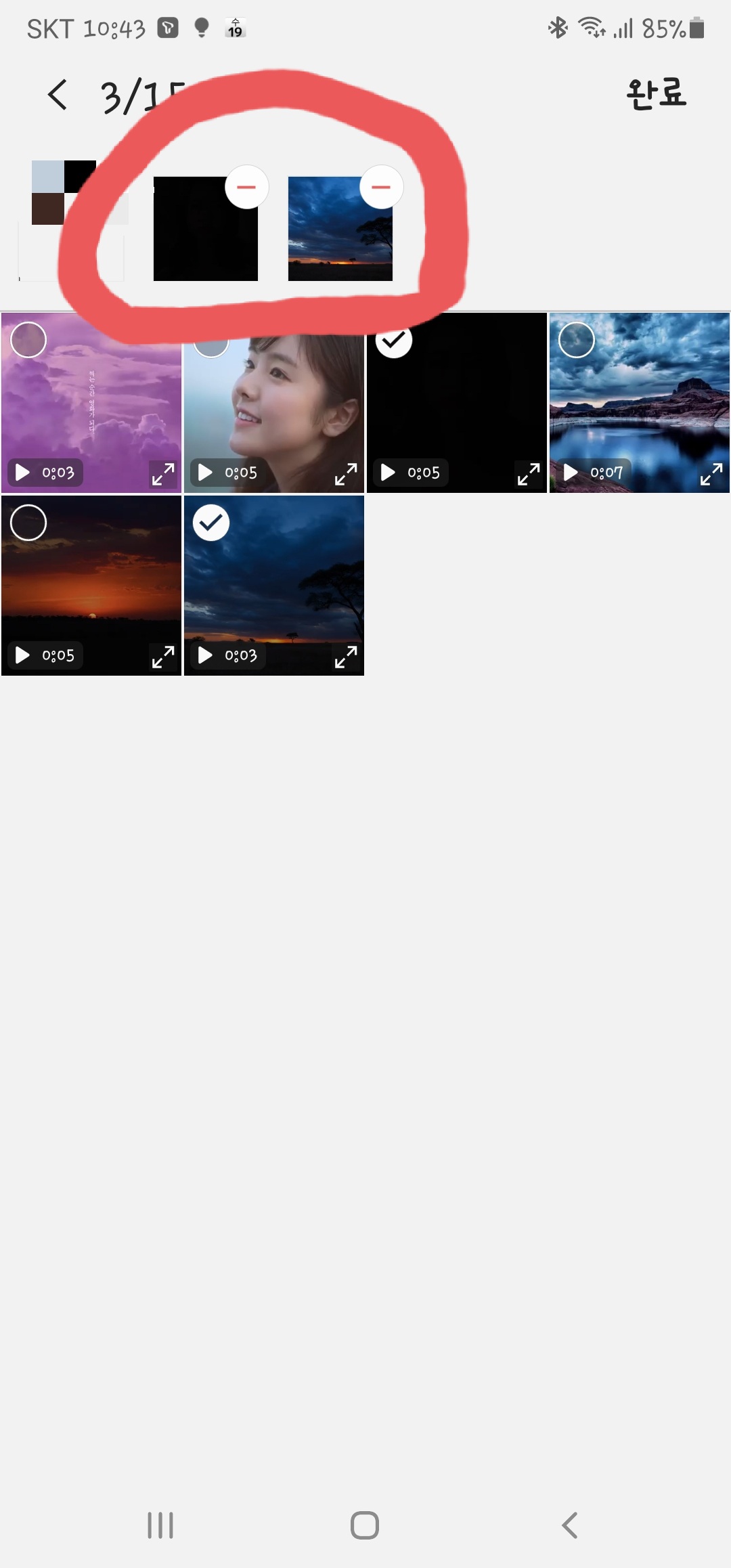 7. 갤러리 폴더에서 <짧은(15초) 동영상>을 선택해야 하는데요, 저는 video 폴더에 짧은 영상으로 미리 준비해 두었기에 이곳을 클릭~