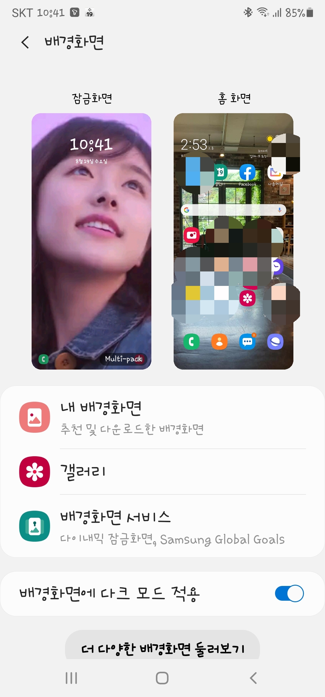 5. 배경화면을 클릭하고 들어가면 잠금화면과 홈화면이 있는 부분이 나오는데