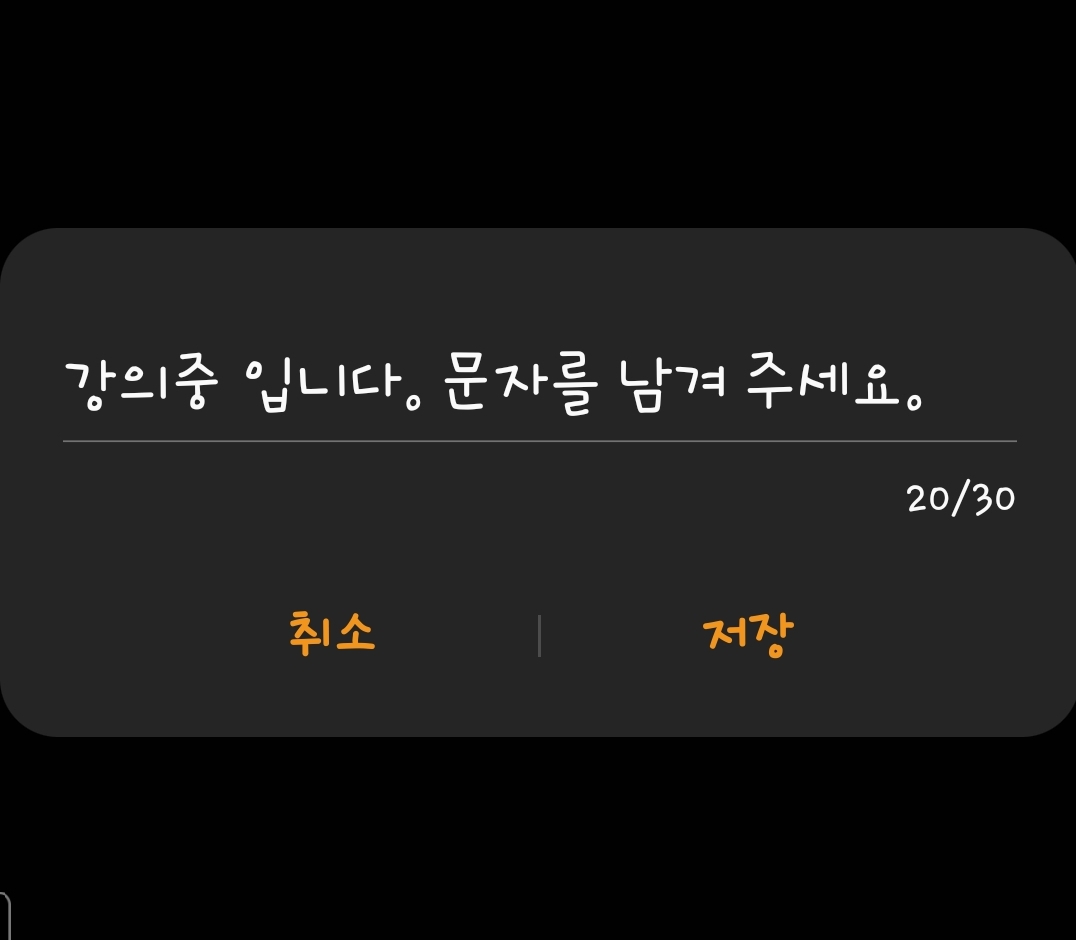 9. 문자 입력 후에 저장을 누르면 다음 처럼 맨 위에 내가 입력한 문장이 나오게 됩니다. 이렇게 되었다면 갤럭시워치에서도 처음으로 보이게 되니 사용하면 되겠지요😄