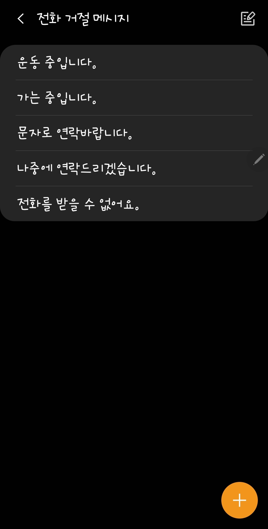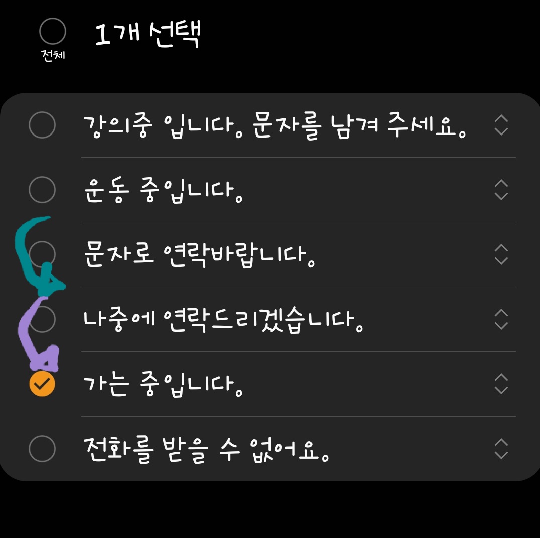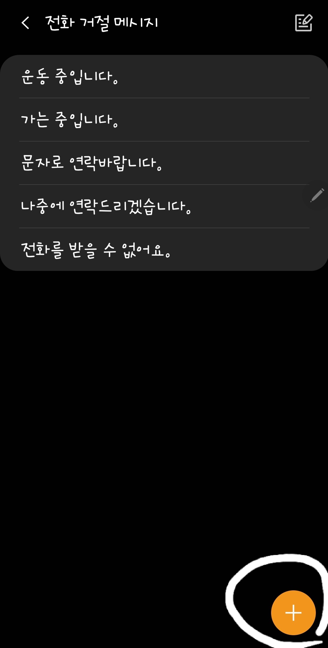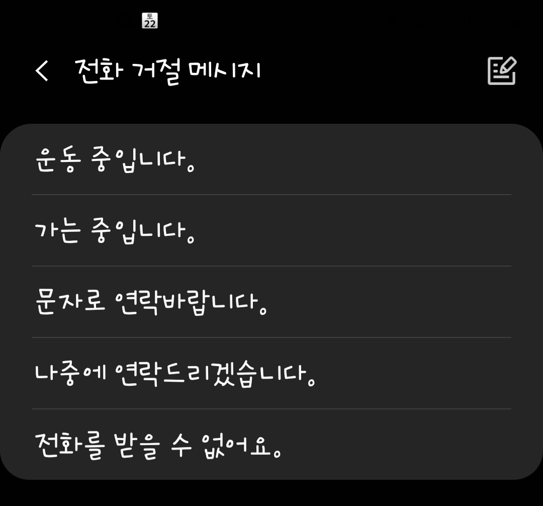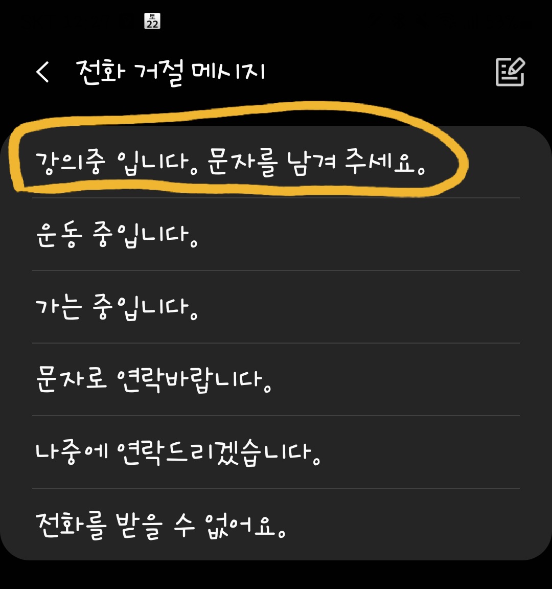 2. 여기를 클릭하면 이미 저장되어 있는 문구(전화 거절 메시지)가 나오게 됩니다.