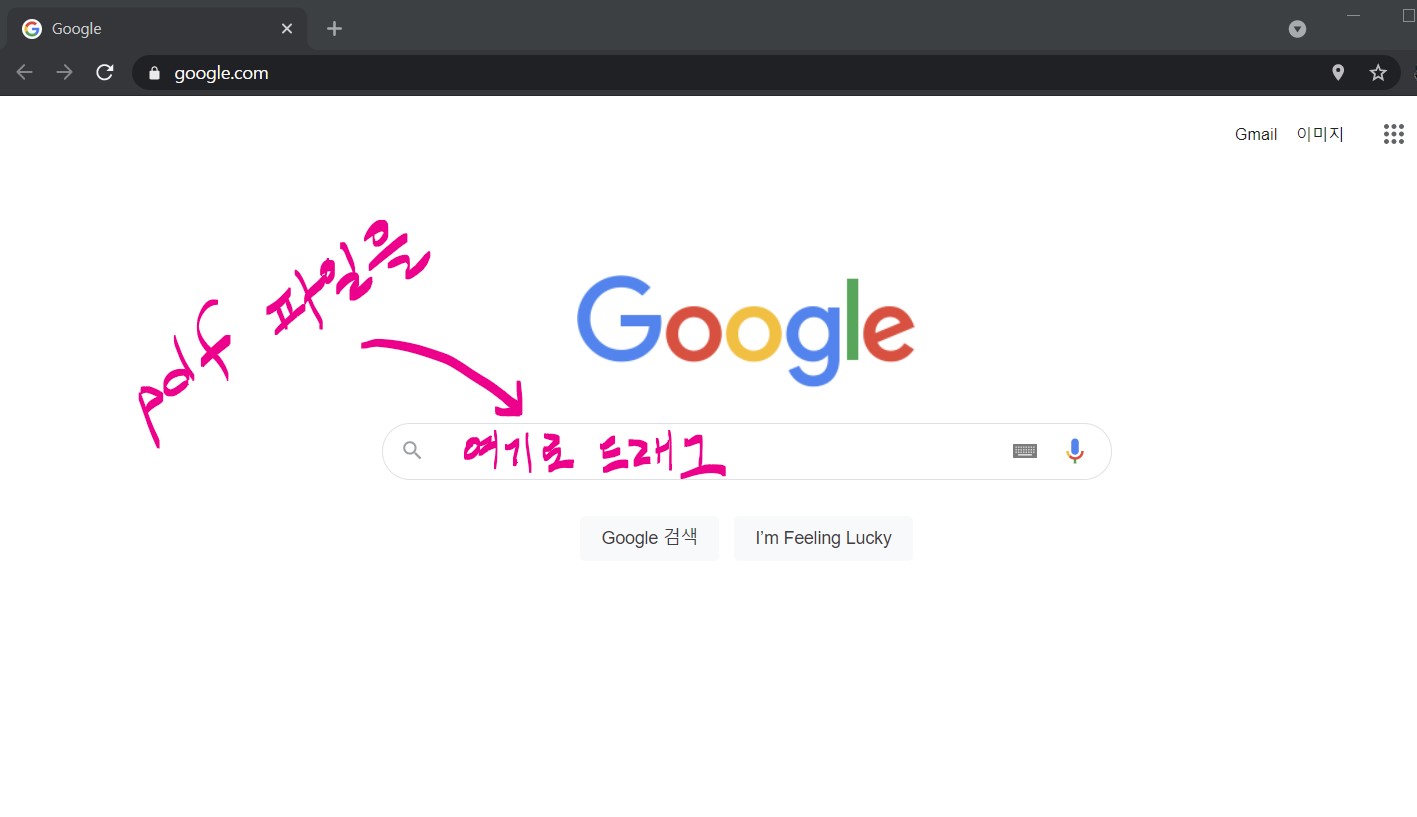 📌 Google Chrome으로 분할할 PDF 파일을 열고, PDF 파일을 열려 있는 크롬 탭에 《드래그》 해서 끌어다 놓습니다.