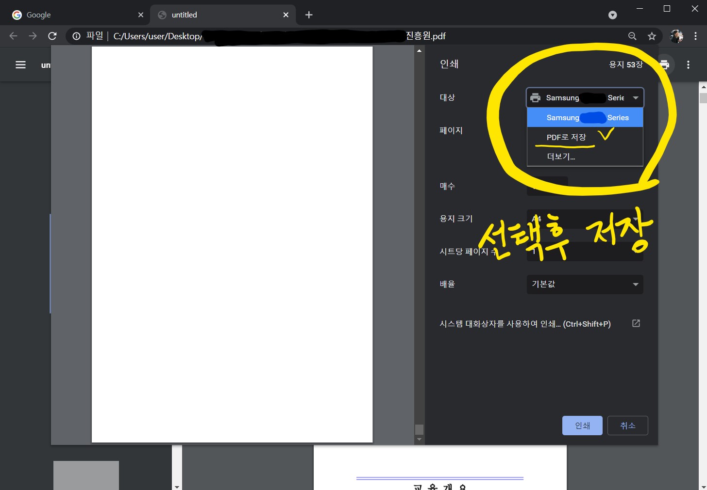 📌 프린터가 있는 부분을 클릭해서 《pdf로 저장》 버튼을 클릭하고
