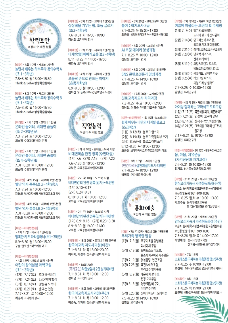 이번 여름도 평생학습으로 더위와 싸워 이겨내시길 바라며, 멋진 프로그램들이 있어 공유하니 참고하시길~~🙆♀️🙆🙆♂️