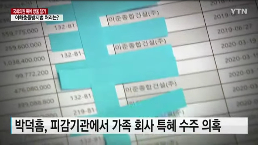 [신영대 / 더불어민주당 대변인 ( 지난 2020년) : 국토부 산하기관인 LH로부터 박덕흠 의원 가족 건설사가 수의계약, 제한입찰로 수주한 정황이 언론을 통해 드러나기도 했습니다.]