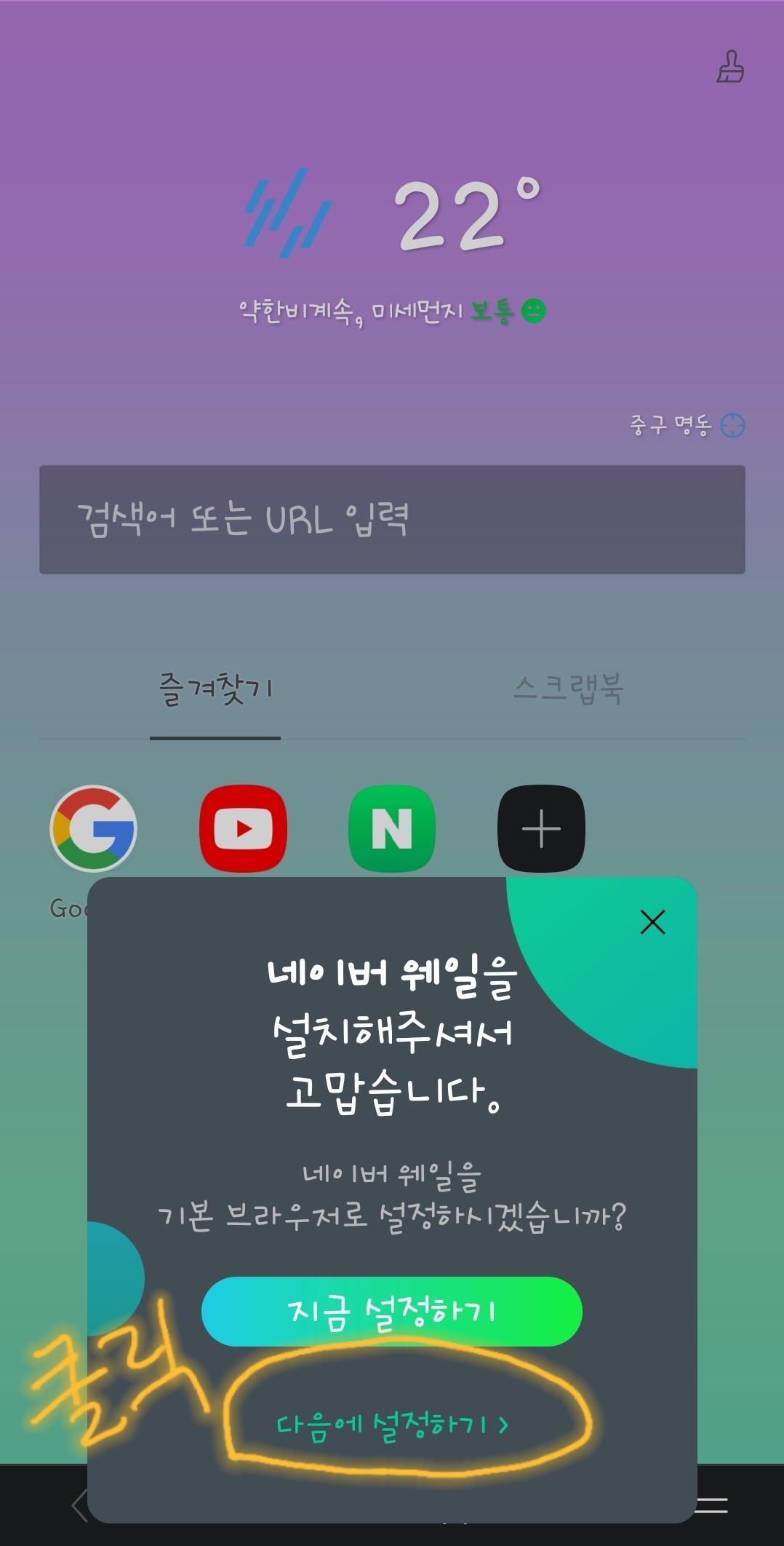 9. 기본 브라우저로 설정하라는 질문이 나오면, 알아서 선택합니다. 저는 다음에 설정하기👌