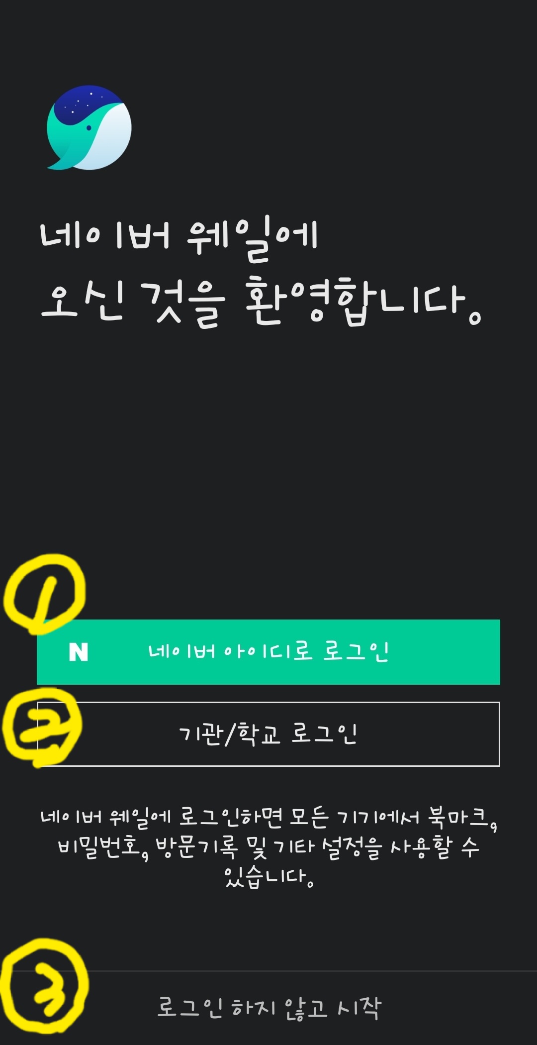 2. 《웨일》을 입력하고