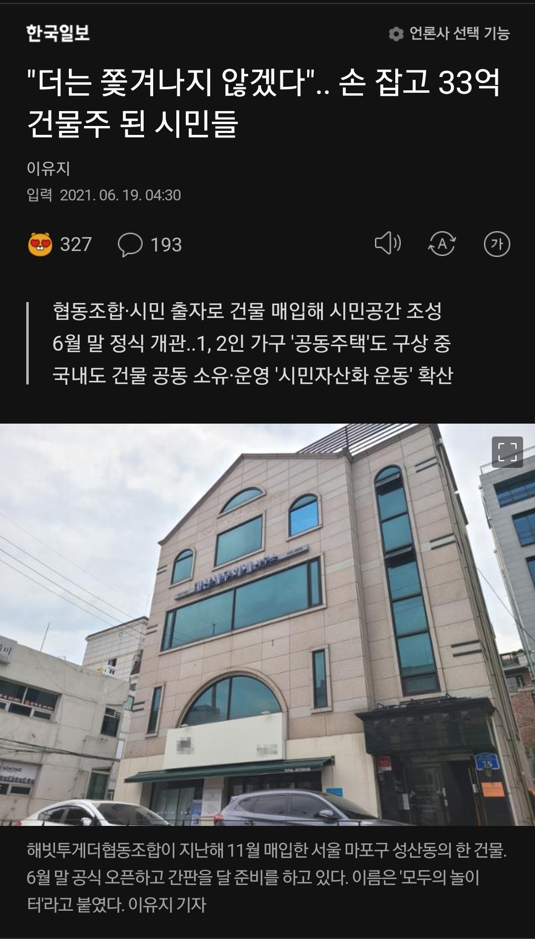 "더는 쫓겨나지 않겠다".. 손 잡고 33억 건물주 된 시민들 2021.06.19