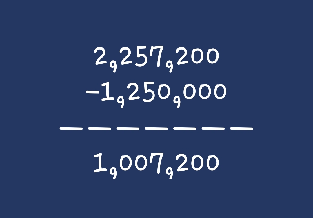 2,257,200 ㅡ 1,250,000 = 1,007,200