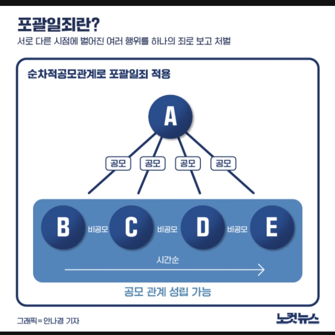 남민준 형사전문 변호사는 "포괄일죄는 공범에 의한 범행 전체를 보고 적용하는 것이다. 범죄 중간에 이탈했다고 해서 혐의가 없어지는 것이 아니"라며 "공모자가 바뀌었다고 하더라도 범행이 계속됐다면 그 범행이 끝났을 때부터 공소시효가 시작된다고 볼 수 있다"고 설명했다.