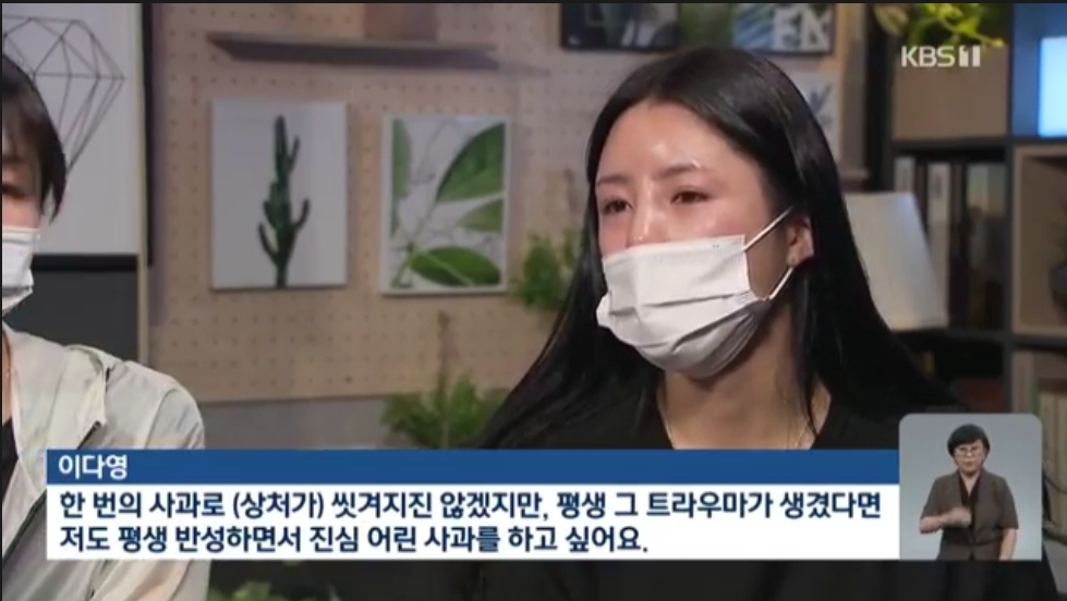 [이다영 : "한 번의 사과로 씻겨지진 않겠지만 평생 그 트라우마가 생겼다면 저도 평생 반성하면서 진심 어린 사과를 하고 싶어요."]