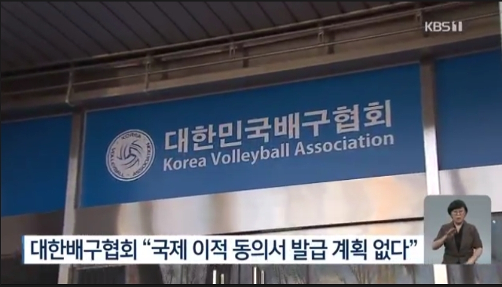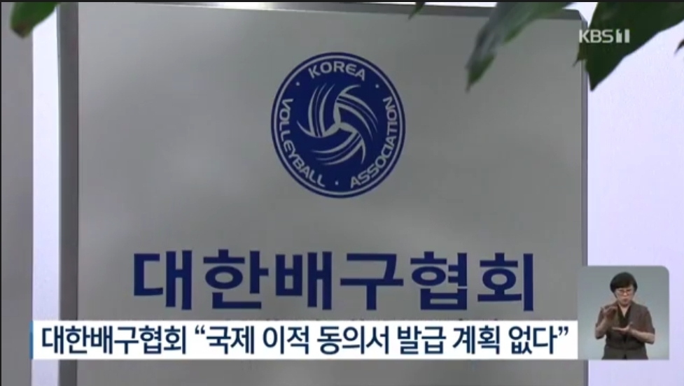 대한배구협회가 현재로서는 국제 이적 동의서를 발급하지 않겠다는 뜻을 분명히 했기 때문입니다.
