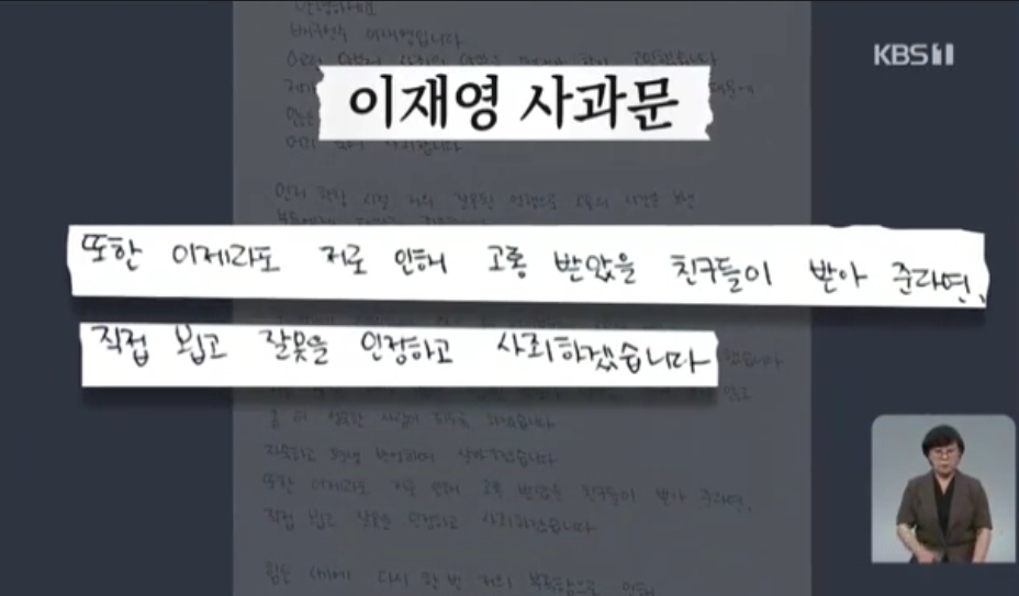 [이재영 : "그 친구들에게 상처가 된 행동에 대해선 정말 미안하게 생각해요."]