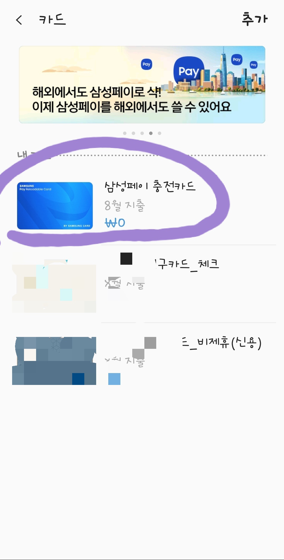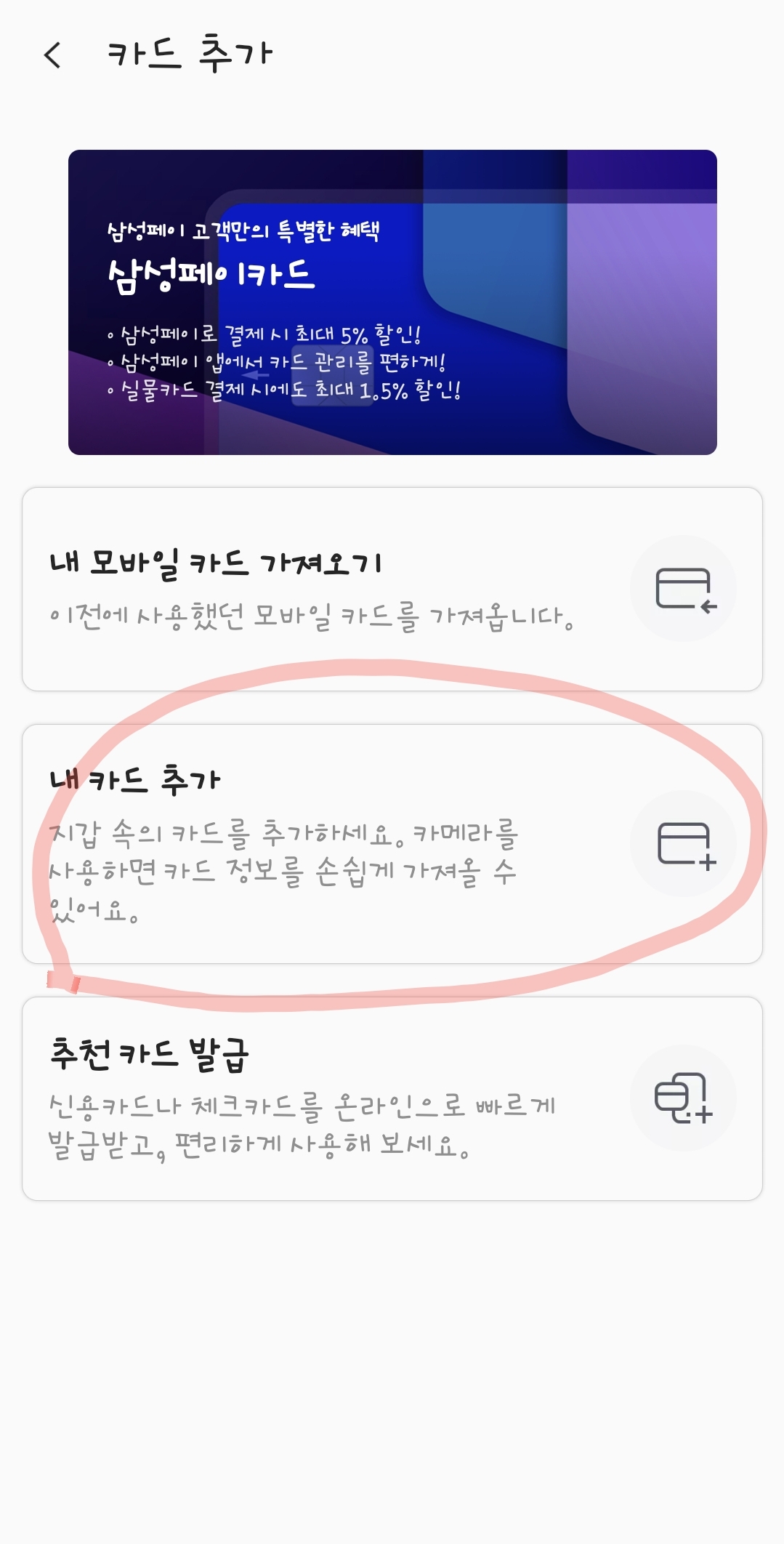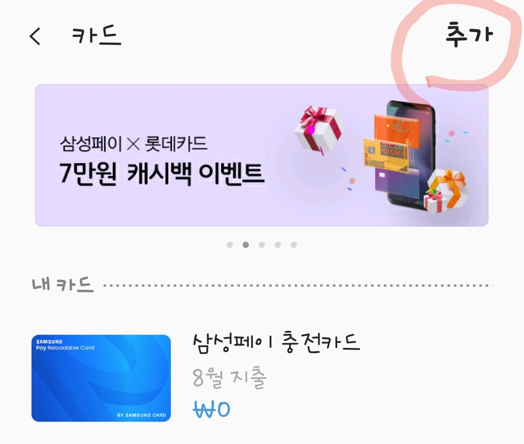 6. 추가를 누르고 나오는 화면에서 《내카드 추가》로 들어 갑니다.