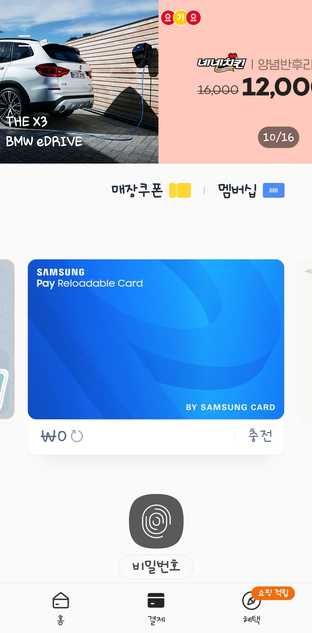 2. 페이 부분을 끌어 올리면 카드가 나오는 건 다 아시죠^^