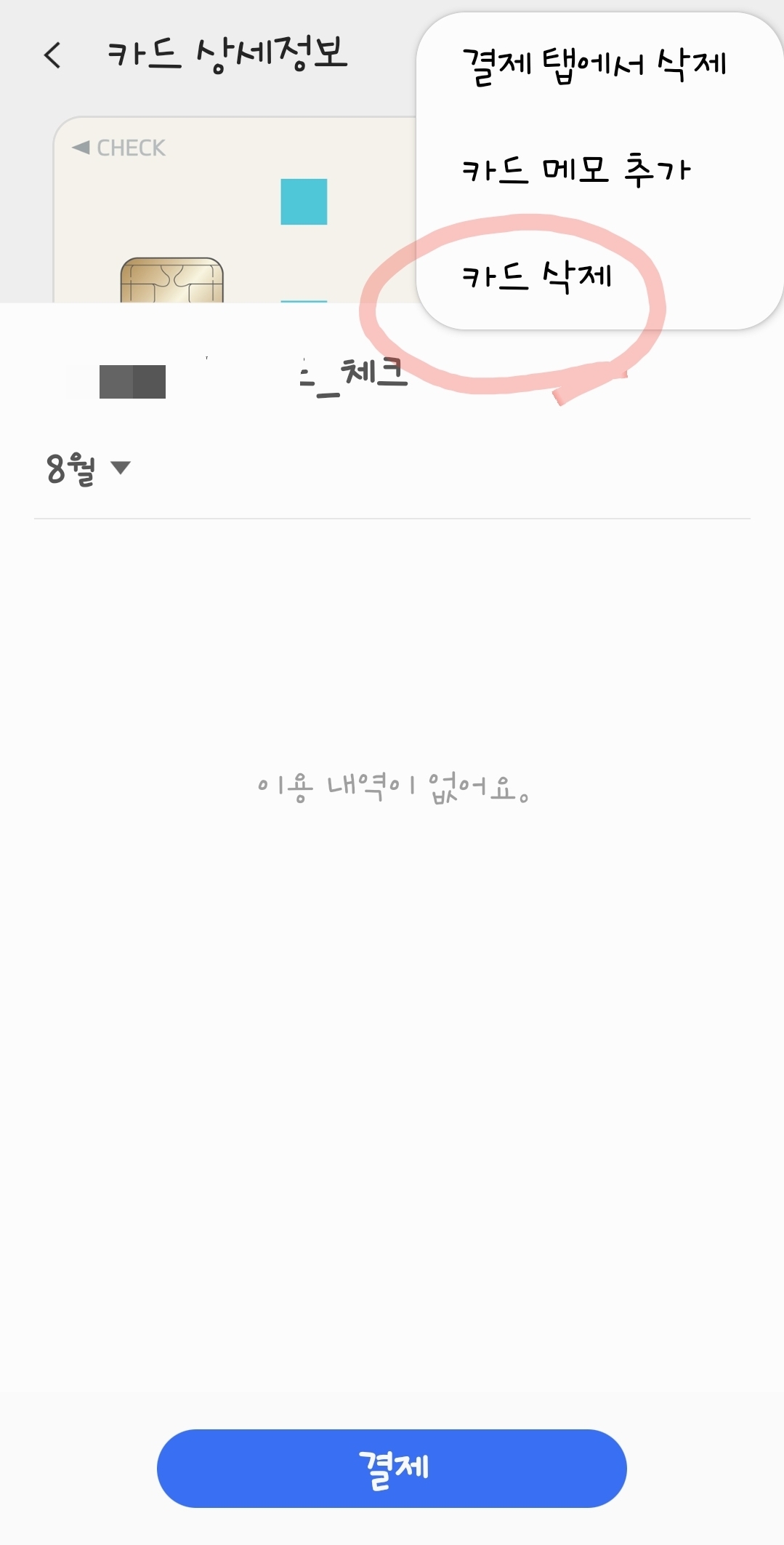 10. 점3개를 누르면 기다리던 《카드 삭제》부분이 나옵니다. 여기로 들어가서 시키는대로 진행하면 삭제 끝📌