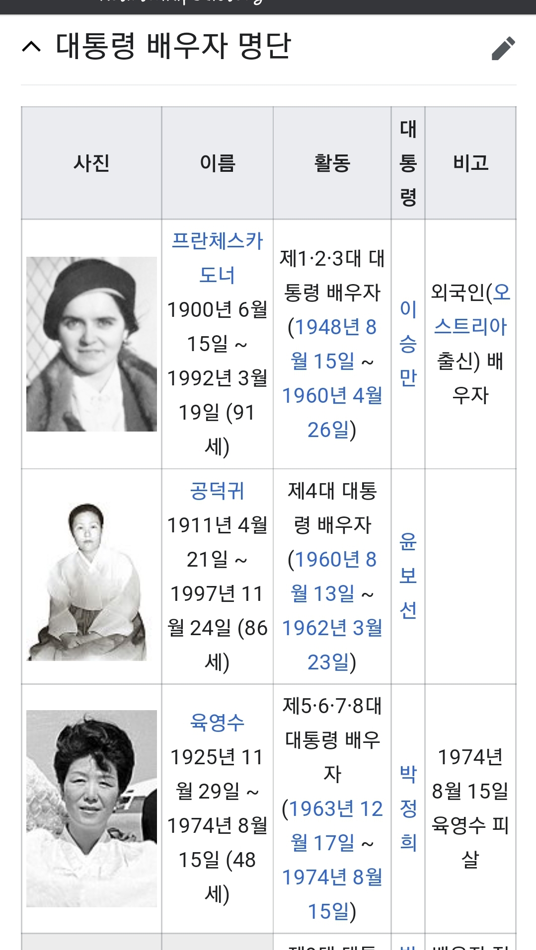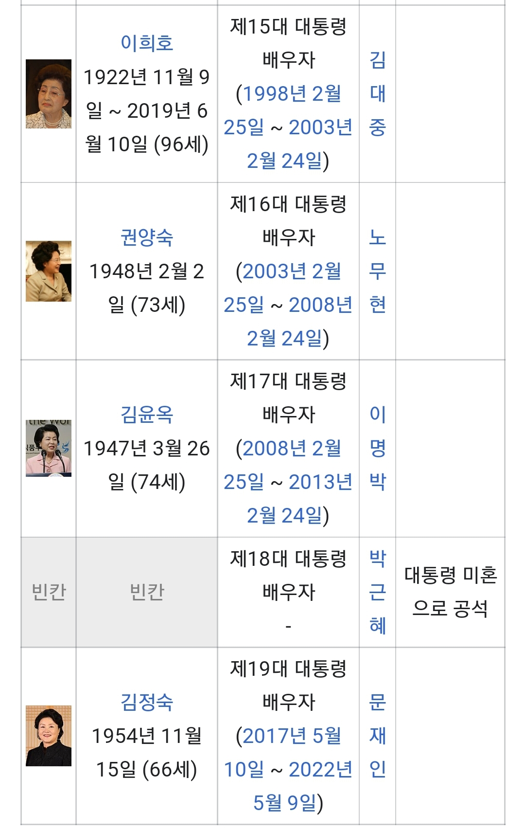 대한민국 대통령의 배우자 - 위키백과, 우리 모두의 백과사전