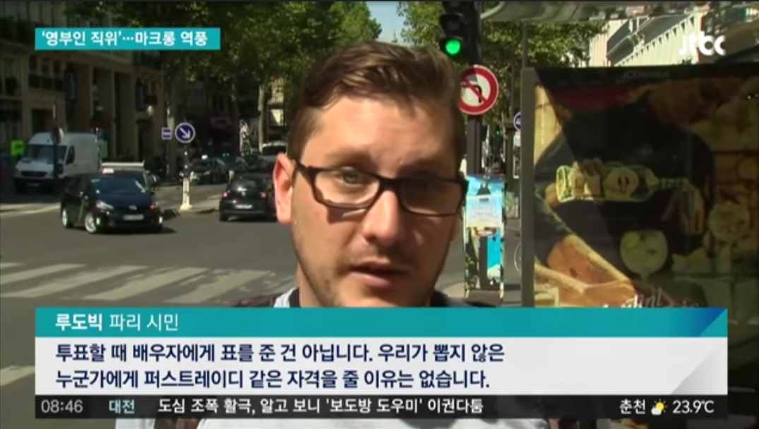 《2017.08.08 JTBC News에 방송된 기사 中 '프랑스 영부인 공식 직위' 논란…마크롱 지지율 추락》이라는 내용이 있습니다.