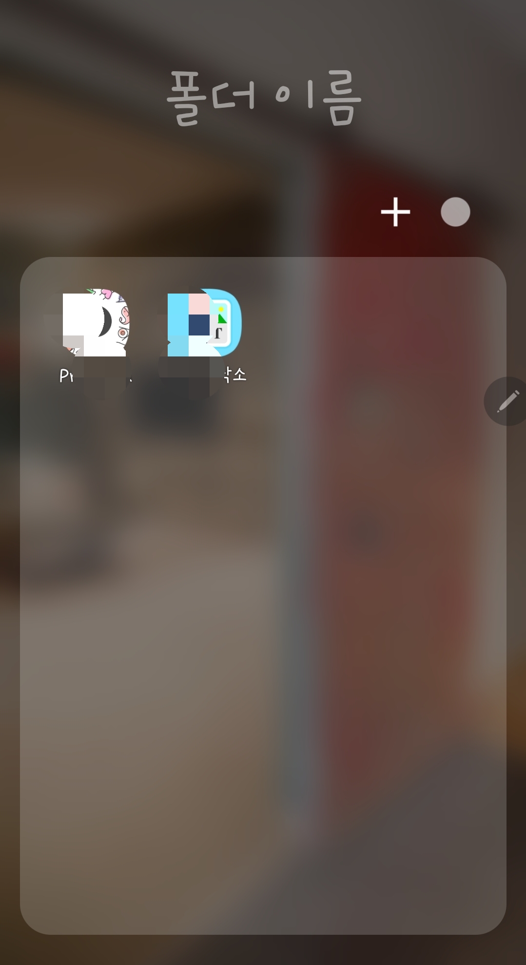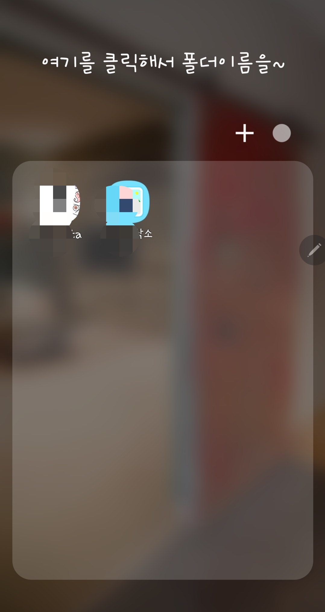 5. 혹시 폴더를 만드는 방법이 궁금하시다면, 유사한 어플을 묶어준다는 생각으로 하나의 어플을 함께 하고 싶은 어플 위로 꾸욱~ 눌러 드래그 해주면 갑자기 없던 폴더가 생기고 그 속에 담긴 2개의 어플이 보일 겁니다.