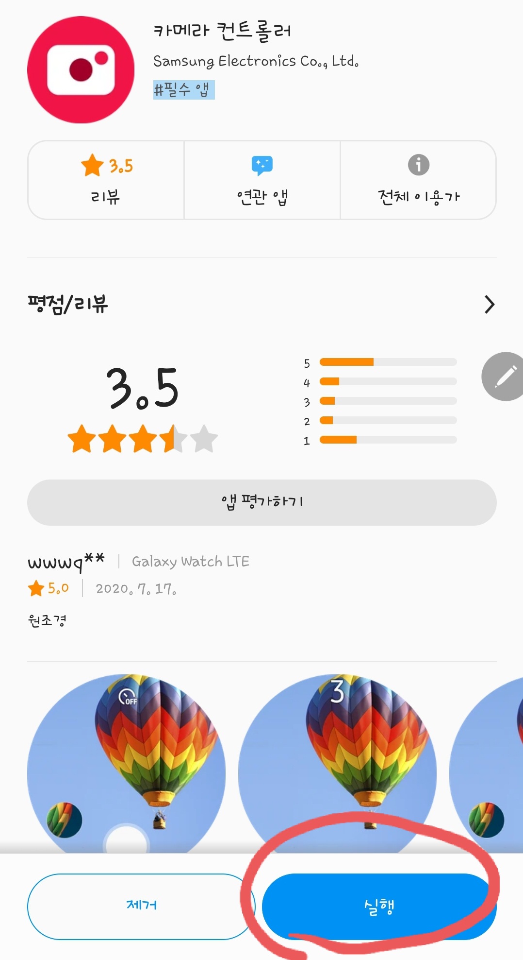 갤럭시 워치 카메라 앱의 주요 3기능은...