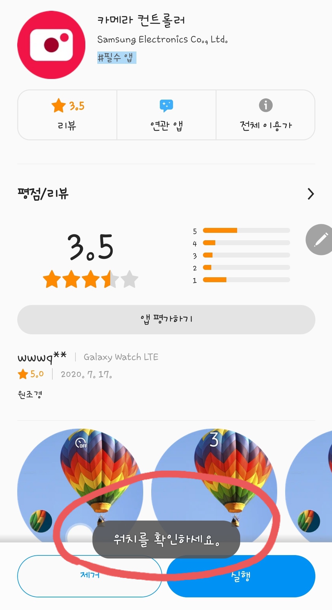 3. 워치가 열리면 검색창에 《카메라 컨트롤러》라고 입력해서 어플을 찾아줍니다.