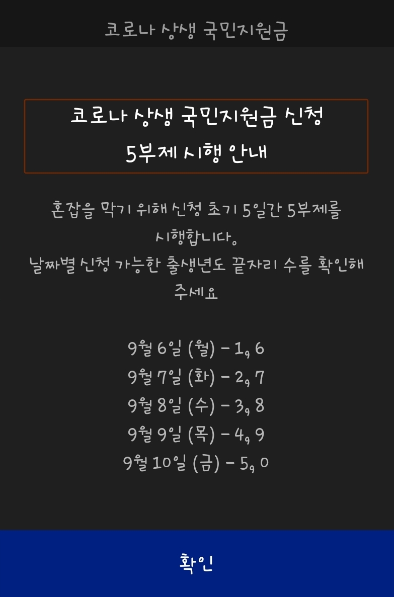 어쨌거나 본인의 《출생년도 끝자리》를 확인하시고 5부제 신청을 잘하시길 바랍니다.