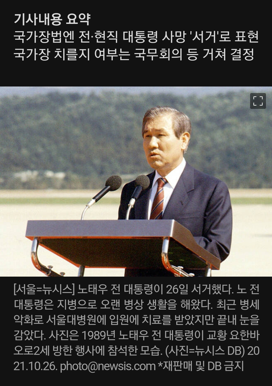 전직 대통령 노태우, 사망? 서거?..국가장법 보니 '○○' 2021.10.26