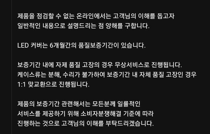 5만원 가까이 주고 구입한 뷰커버가 종류에 따라 3~6개월 동안만 품질을 보증해 준다는 거요.