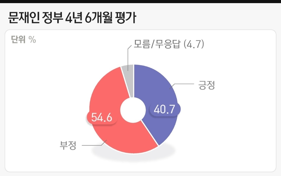 문재인 정부에 대한 부정적 평가 54%와 긍정적 평가 40%의 기준을 알아보려고 했으나 한계가 여기까지인가 봅니다.