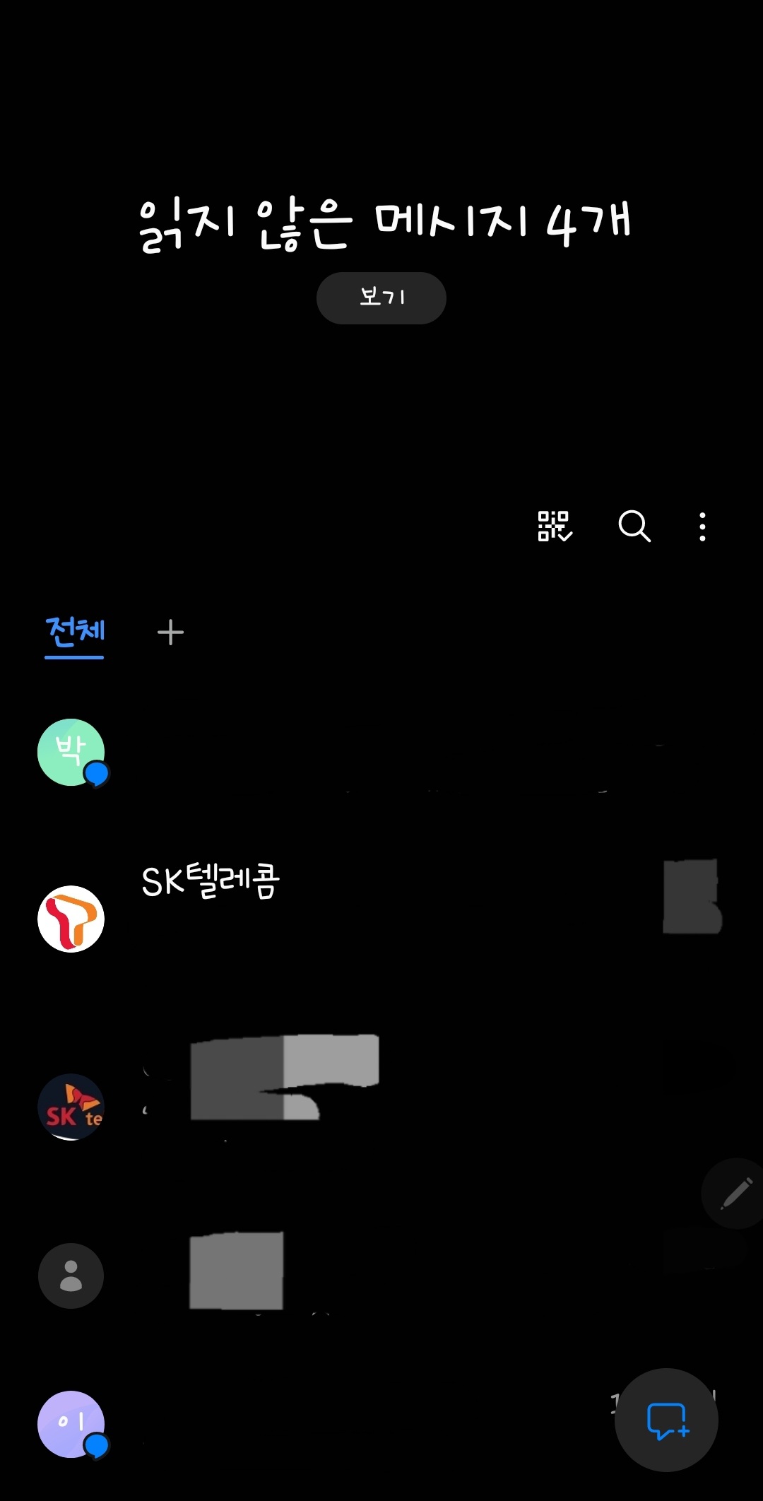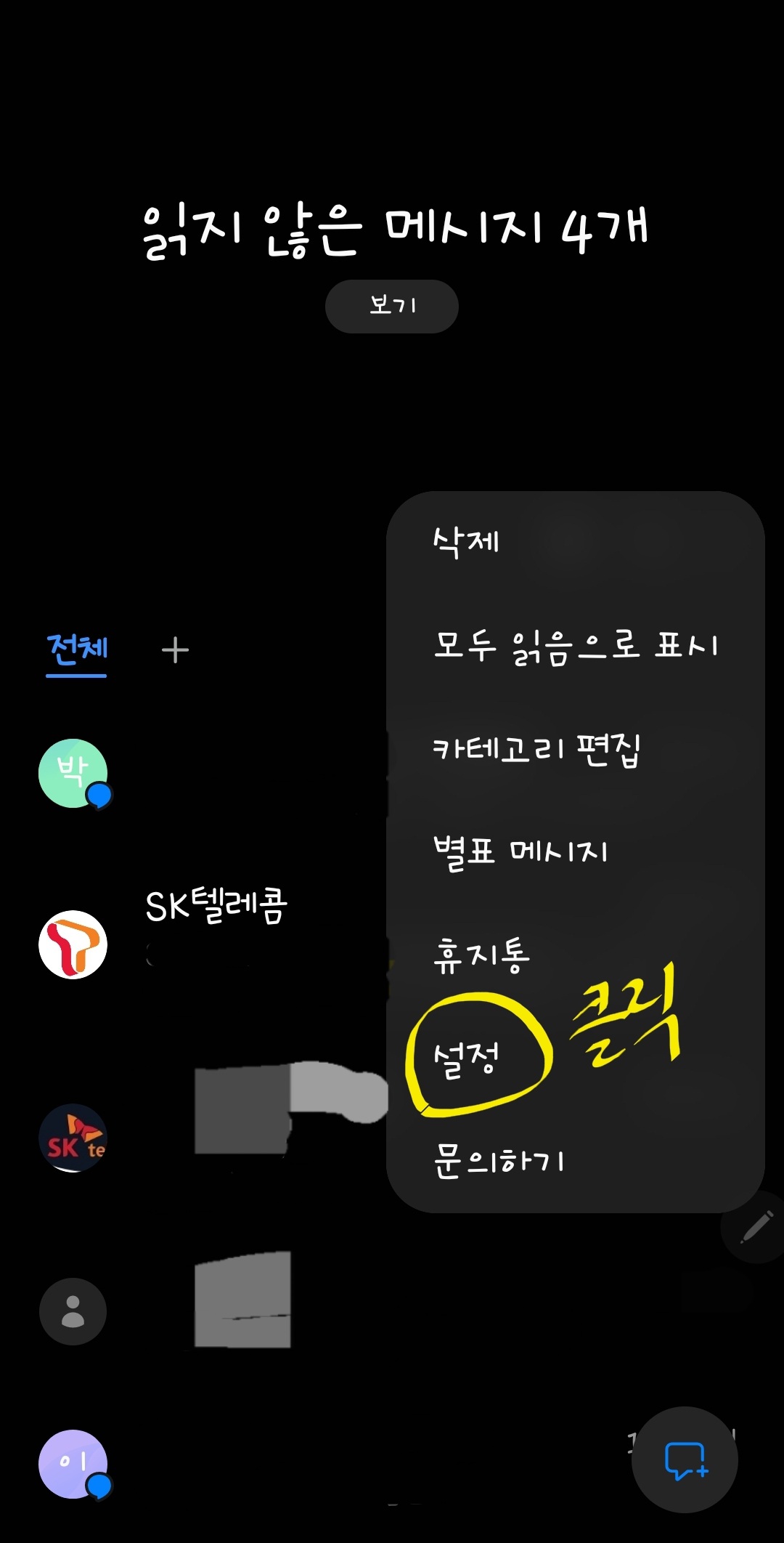 2. 문자들을 볼 수 있는 화면이 열리게 됩니다