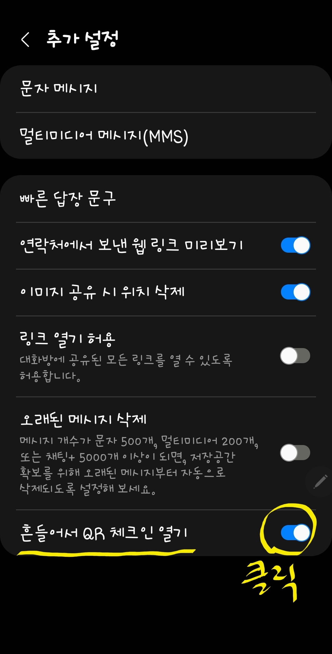 📍QR코드가 나타나는 기능 설정입니다.